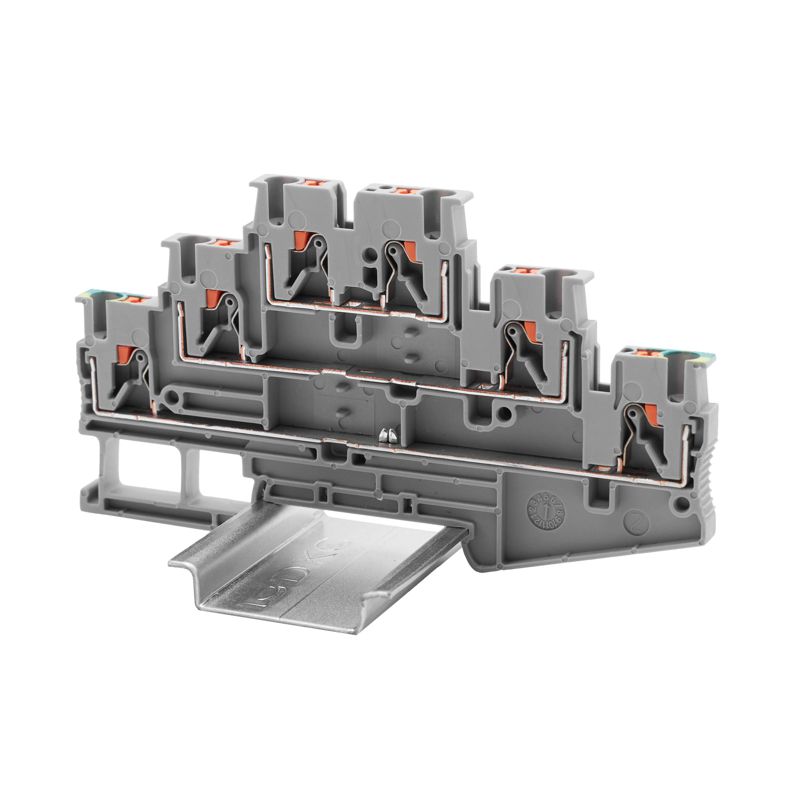 Описание: Клемма трехуровневая проходной уровень; син. и заземл.; зажим push-in; 6 точек подключения; 2.5кв.мм DKC VPRTT-2.5-3L-LNPE