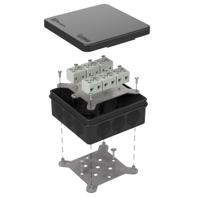 Описание: Коробка огнестойкая ОП 100х100х40мм Е15-Е120 двухкомпонентная Промрукав 60-0303-9005-FR6.0-12