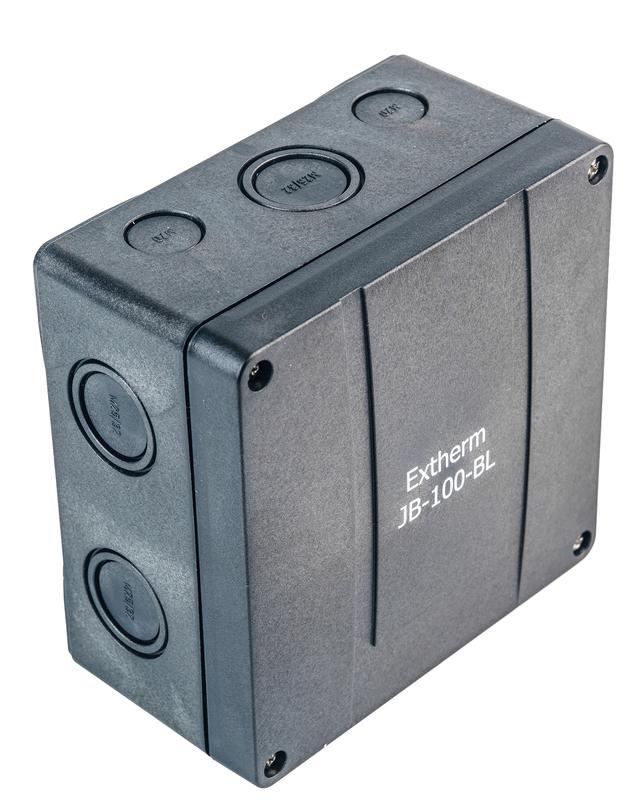 "Коробка Extherm JB-100-BL предназначена для подвода питания к нагревательным кабелям, разветвления линий нагревательных кабелей в