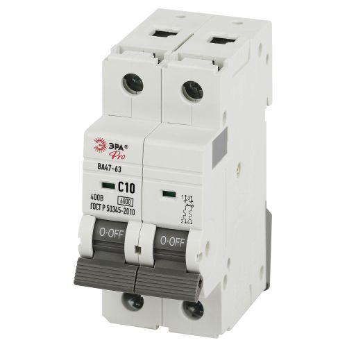 Описание: Выключатель автоматический 2п C 10А 6кА ВА47-63 PRO VA63-2P10C6 Эра Б0063152