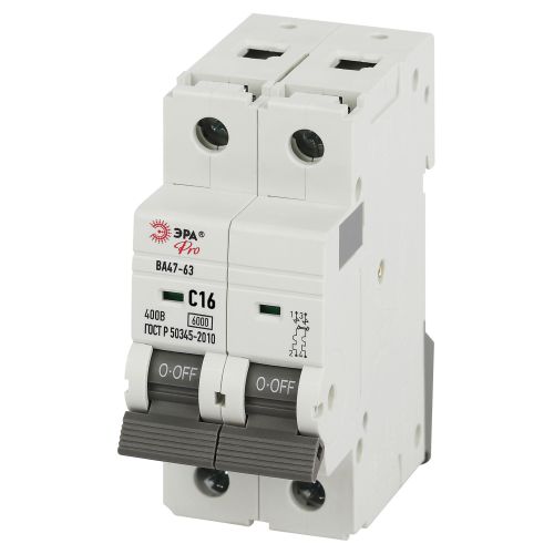 Описание: Выключатель автоматический 2п C 16А 6кА ВА47-63 PRO VA63-2P16C6 Эра Б0063153