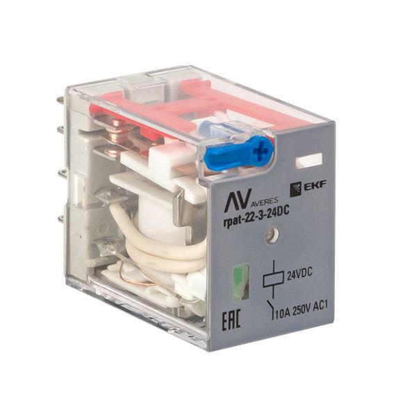 Реле промежуточное RPAt 22/3 10А 24В DC с кнопкой и мех. индикацией AVERES EKF rpat-22-3-24DC - способы оплаты