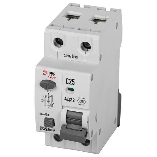 Выключатель автоматический дифференциального тока 1P+N C 25А 30мА тип А АВДТ 4.5кА PRO D32E2C25А30 АД32 электронное Эра Б0057385 - способы оплаты