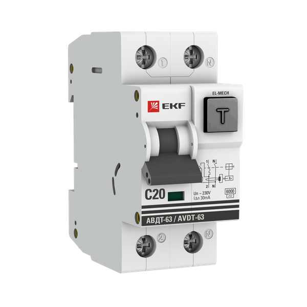 Описание: Выключатель автоматический дифференциального тока 20А 30мА тип AC 6кА АВДТ-63 электромех. PROxima EKF DA63-20-30-AC