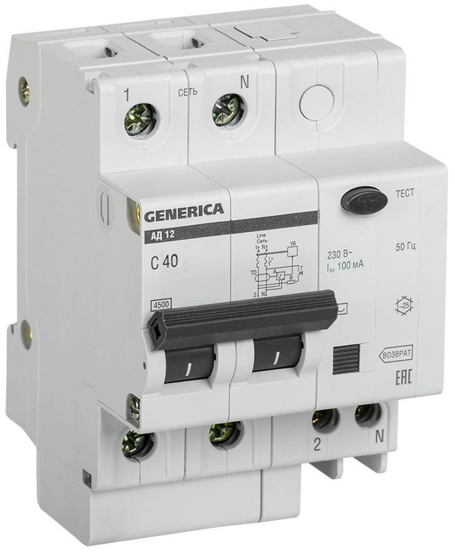 Выключатель автоматический дифференциального тока 2п 40А 100мА АД12 GENERICA MAD15-2-040-C-100 - условия доставки