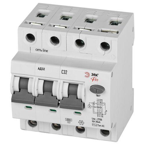 Выключатель автоматический дифференциального тока 3P+N C 32А 30мА тип AC защита 230В АВДТ 4.5кА PRO D32E4C32AC30P АД32 электронное Эра Б0057796 - способы оплаты