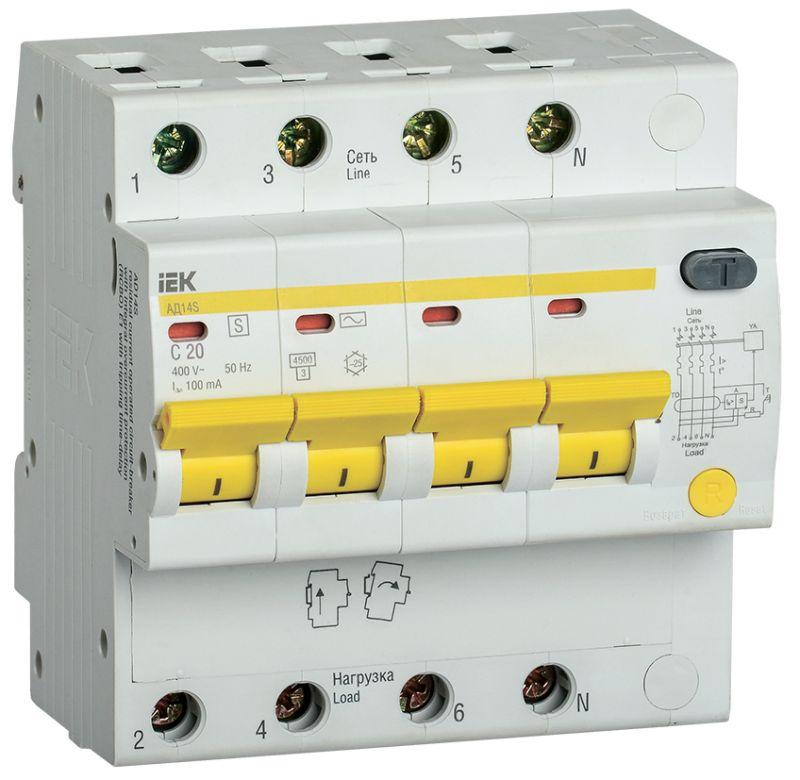 Выключатель автоматический дифференциального тока селективный 4п 20А 100мА тип AC АД14S IEK MAD13-4-020-C-100 - условия доставки
