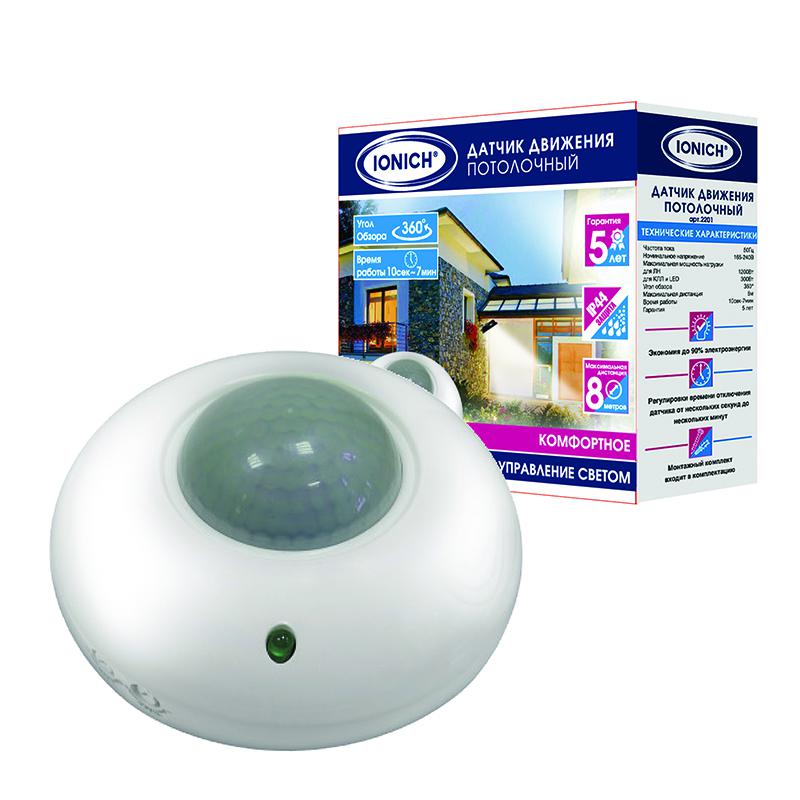 Датчик движения потолочный 8м 1200Вт 7мин бел. IONICH 2201 - условия доставки
