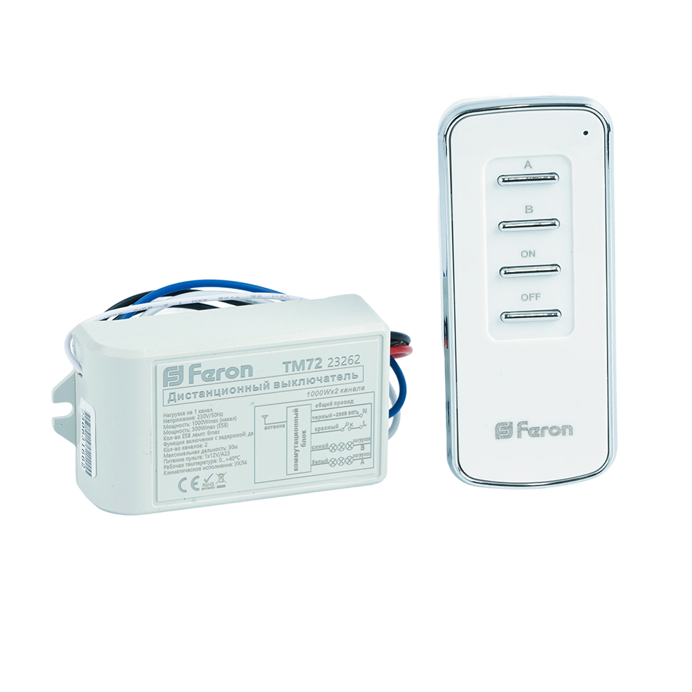 Описание: Выключатель дистанционный 230V 1000W 2-хканальный 30м с пультом управления, TM72 23262 FERON