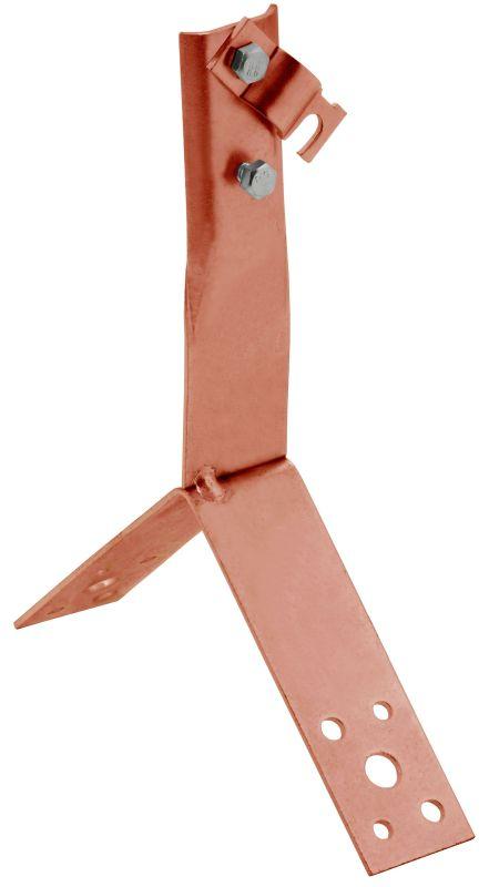Держатель проводника круглого для конька с болтовым зажимом предназначен для закрепления прутка на коньке скатной кровли. Держатель крепится к кровле при помощи метизов. Зажим проводника происходит при помощи болтового соединения. Материал корпуса - медь.