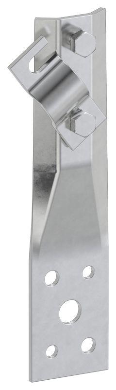 Держатель прямой с болтовым зажимом предназначен для монтажа круглого проводника на парапетах и фасадах зданий.