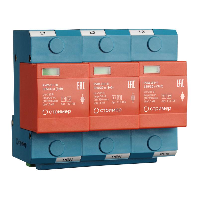 Описание: Устройство защиты от импульсных перенапряжений РИФ-Э-I+II 385/30 с (3+0) Стример 113105
