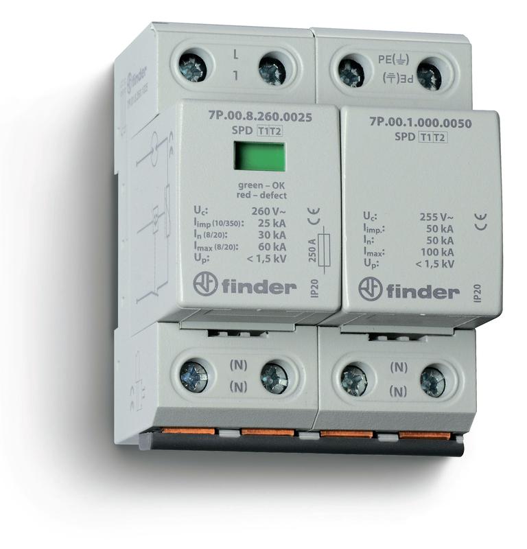 УЗИП тип 1+2 оснащено 1 варистором и 1 искровым разрядником, что обеспечивает двойную защиту от перенапряжений. Варистор служит для поглощения импульсных перенапряжений, а искровой разрядник - для разряда накопленной энергии.