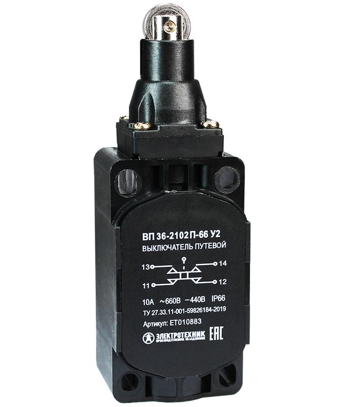 Описание: Выключатель путевой ВП 36-2102П-66 У2 1НО+1НЗ толкатель с роликом безинерцион. 30х60мм без сальника 3А IP66 Электротехник ET010883