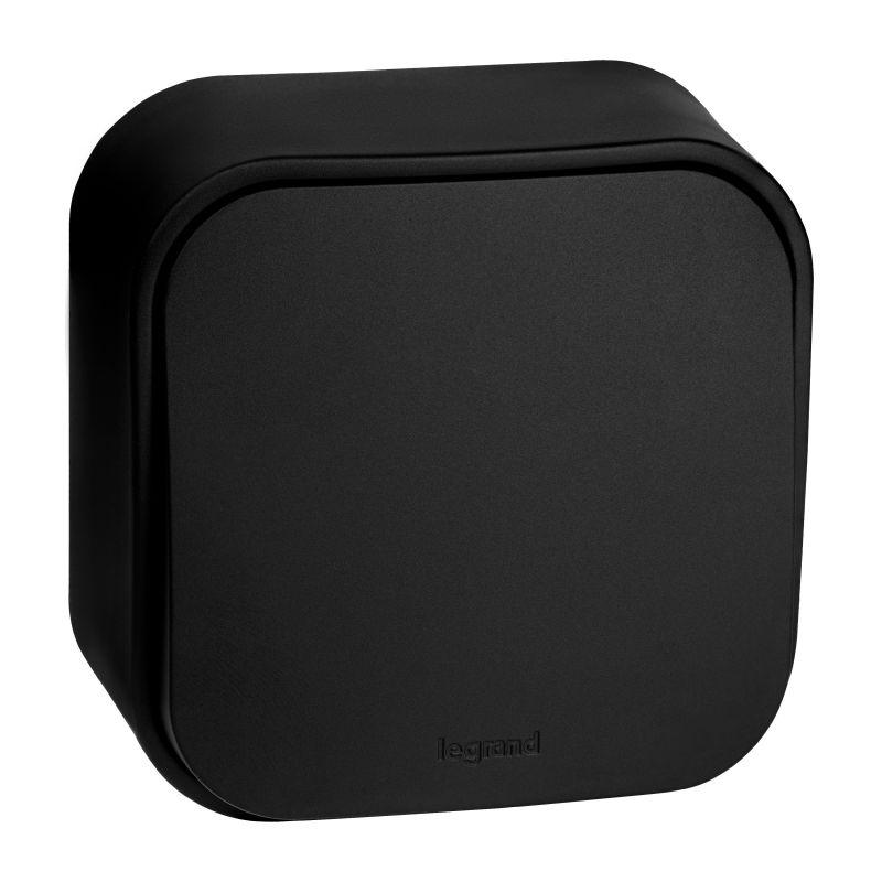 "Выключатель одноклавишный накладного (открытого) монтажа Legrand Quteo, цвет ""Чёрный матовый"", степень защиты IP20, номинальный ток 10А, напряжение ~250В, винтовые зажимы.
