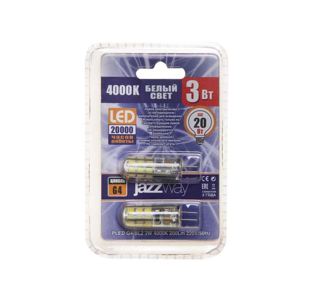 Светодиодные лампы в блистерной упаковке PLED-G4 JAZZWAY повторяют форму и размеры стандартных галогенных