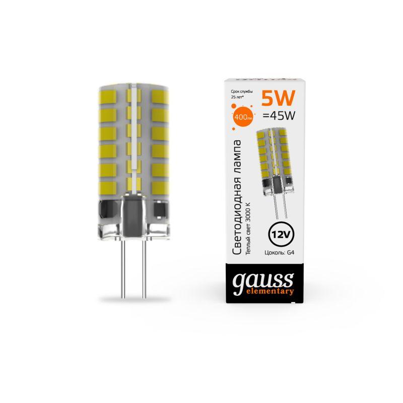 Описание: Лампа светодиодная Elementary 5Вт 3000К G4 400лм 12В силикон GAUSS 18715