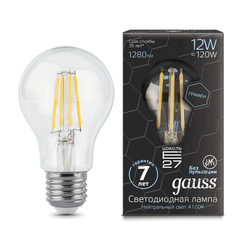 Лампа светодиодная Black Filament Graphene A60 12Вт 4100К E27 Gauss 102802212 - условия доставки