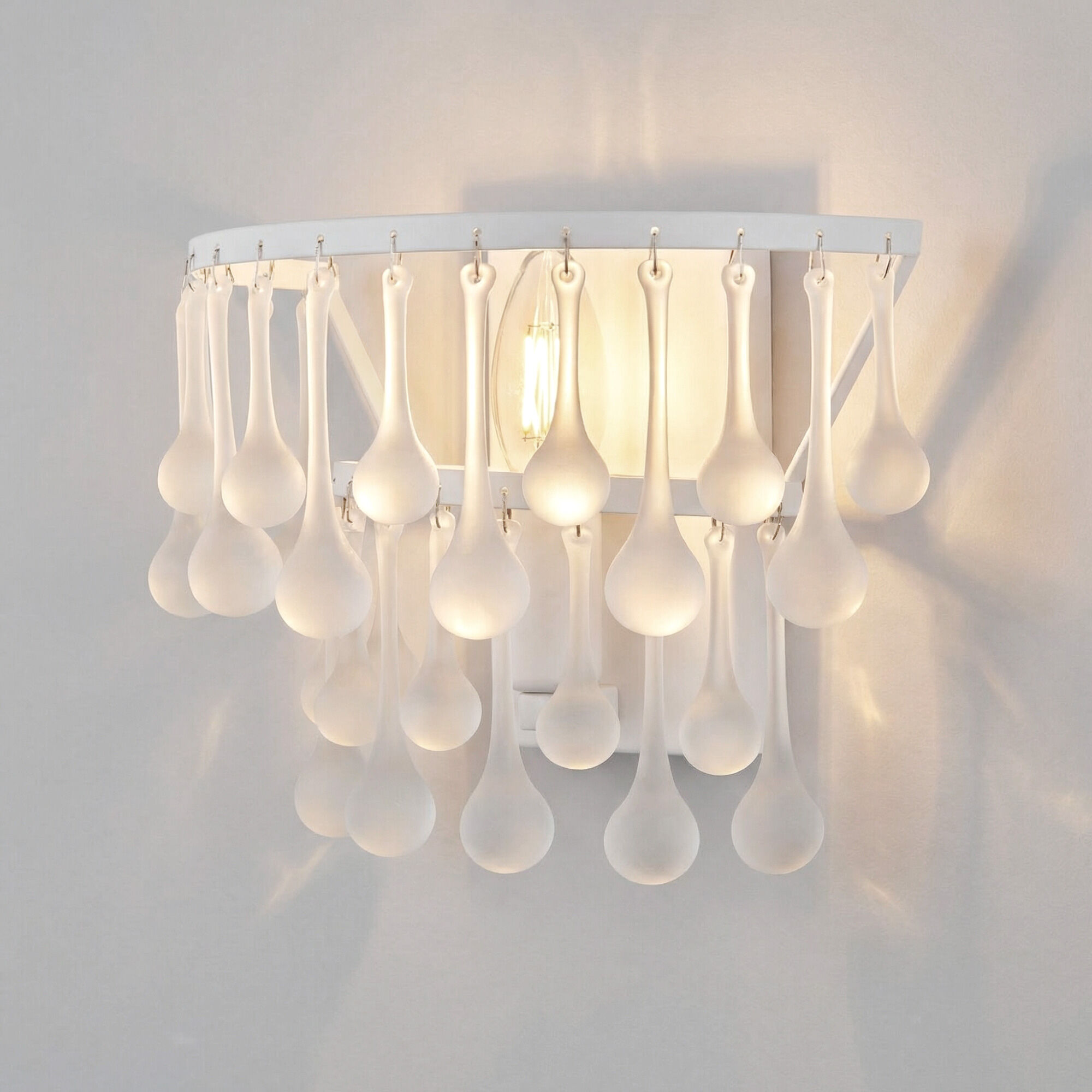 Коллекция Gutta является воплощением аллегории чистоты. Белоснежное основание моделей дополнено изысканными каплевидными подвесками, напоминающие ювелирные кулоны, где капли, выполненные из прозрачного матового стекла, выглядят как застывший воск свечи.