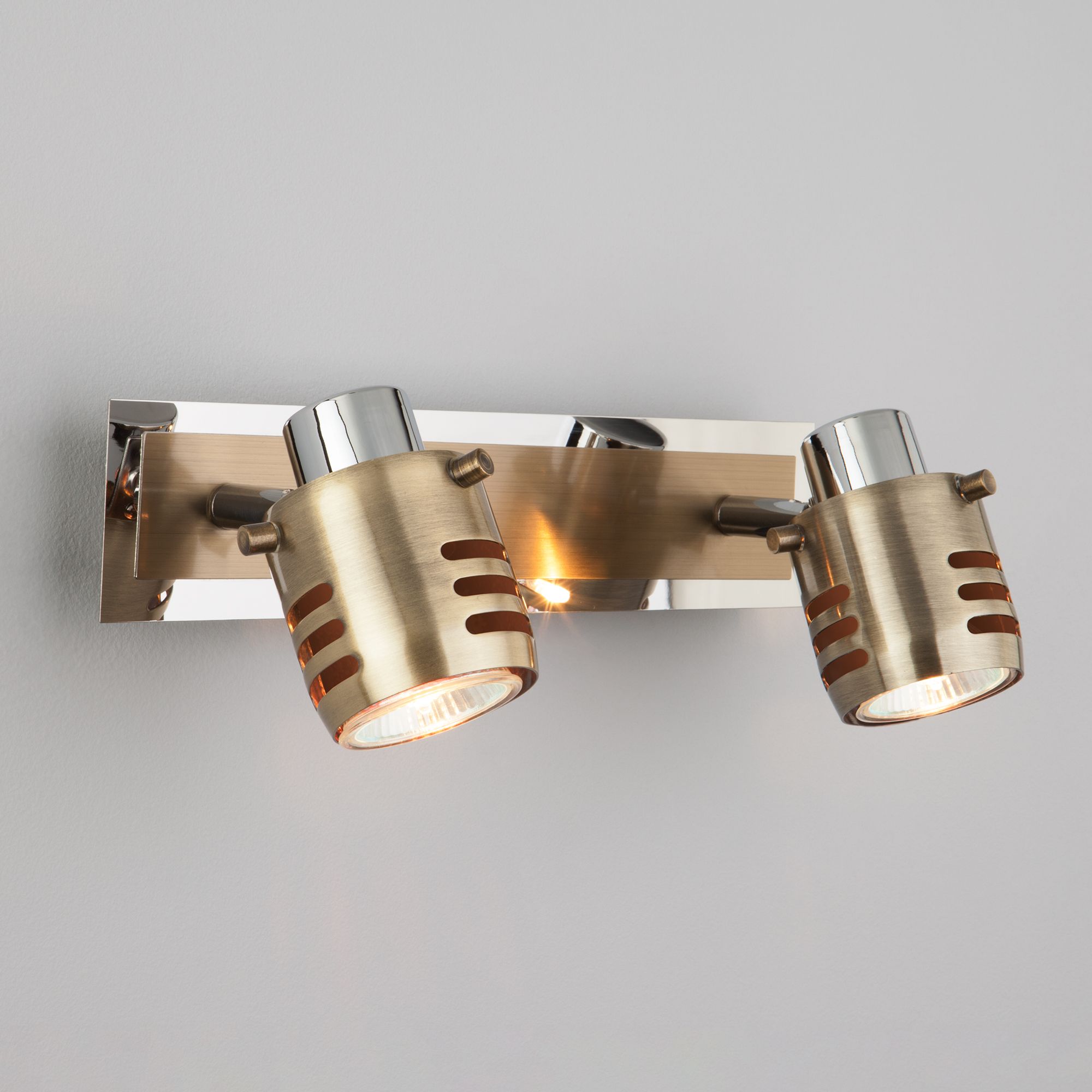 Спот с поворотными плафонами 234632 хром античная бронза создаст качественное дополнительное освещение и станет ярким дополнением к основному источнику света. Благодаря поворотным металлическим плафонам можно направлять световой поток в нужном направлении. В качестве источника света используются сменные лампы с цоколем G5.3. Патрон рассчитан на максимальную мощность ламп накаливания 50 Вт.