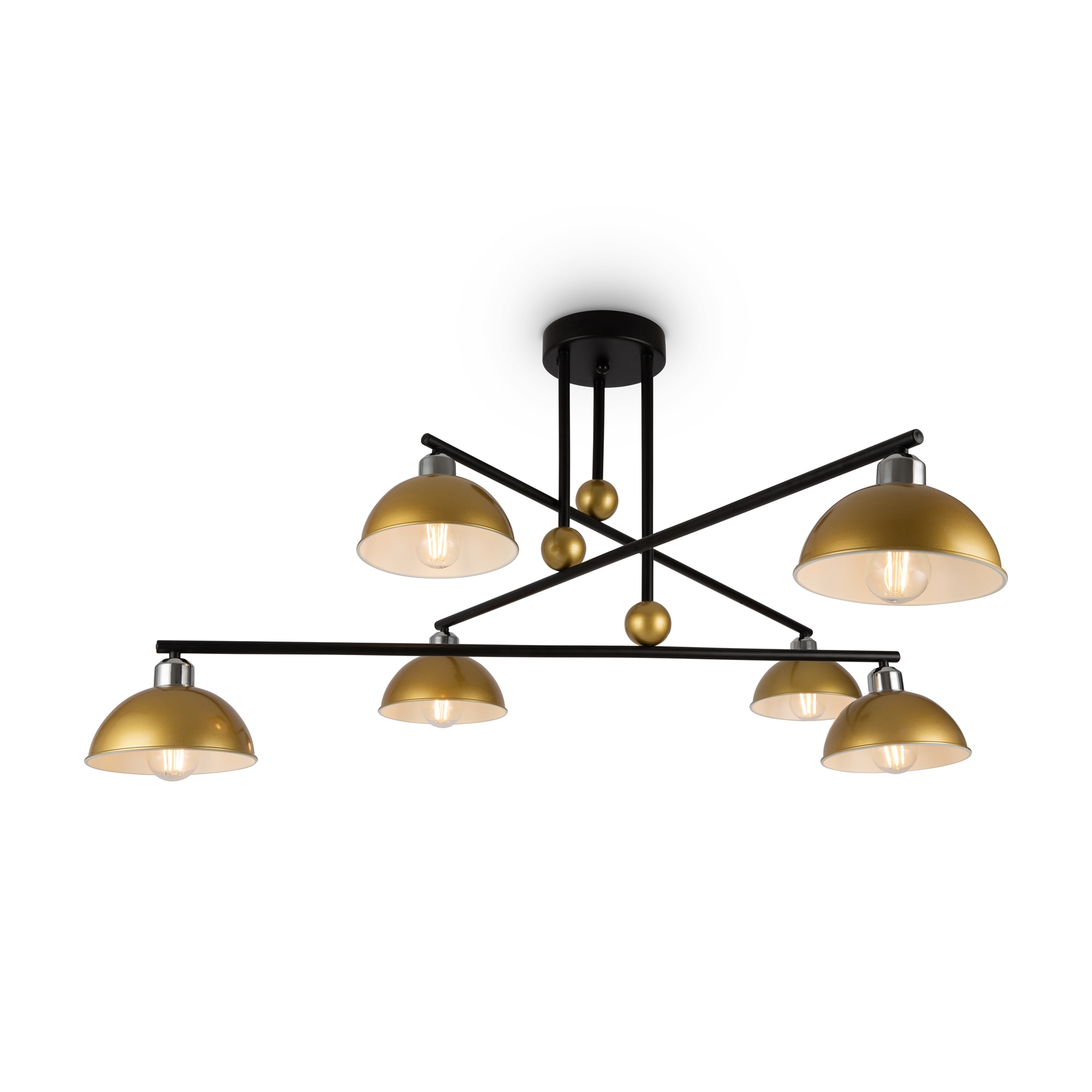 Арматура - металл, плафоны - стекло. Цветовые комбинации арматуры и плафона: черный + прозрачный, черный + янтарный, латунь + прозрачный. Элементы декора - выдувные «бусины» из стекла. Высота проводов регулируется. Источник света - лампа с цоколем GU10.