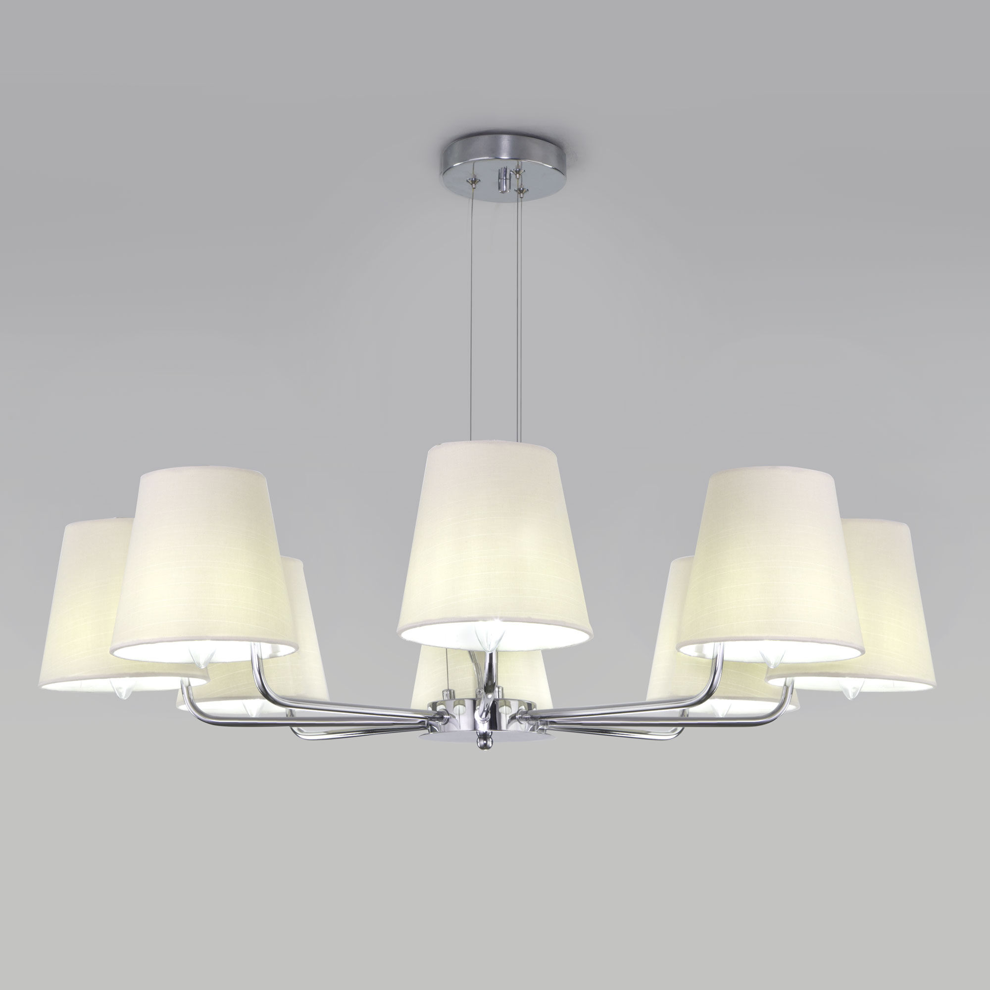 Подвесная люстра с абажурами Eurosvet 601558 хром обеспечит качественное основное освещение. Благодаря бежевым тканевым абажурам создается мягкое рассеянное свечение.