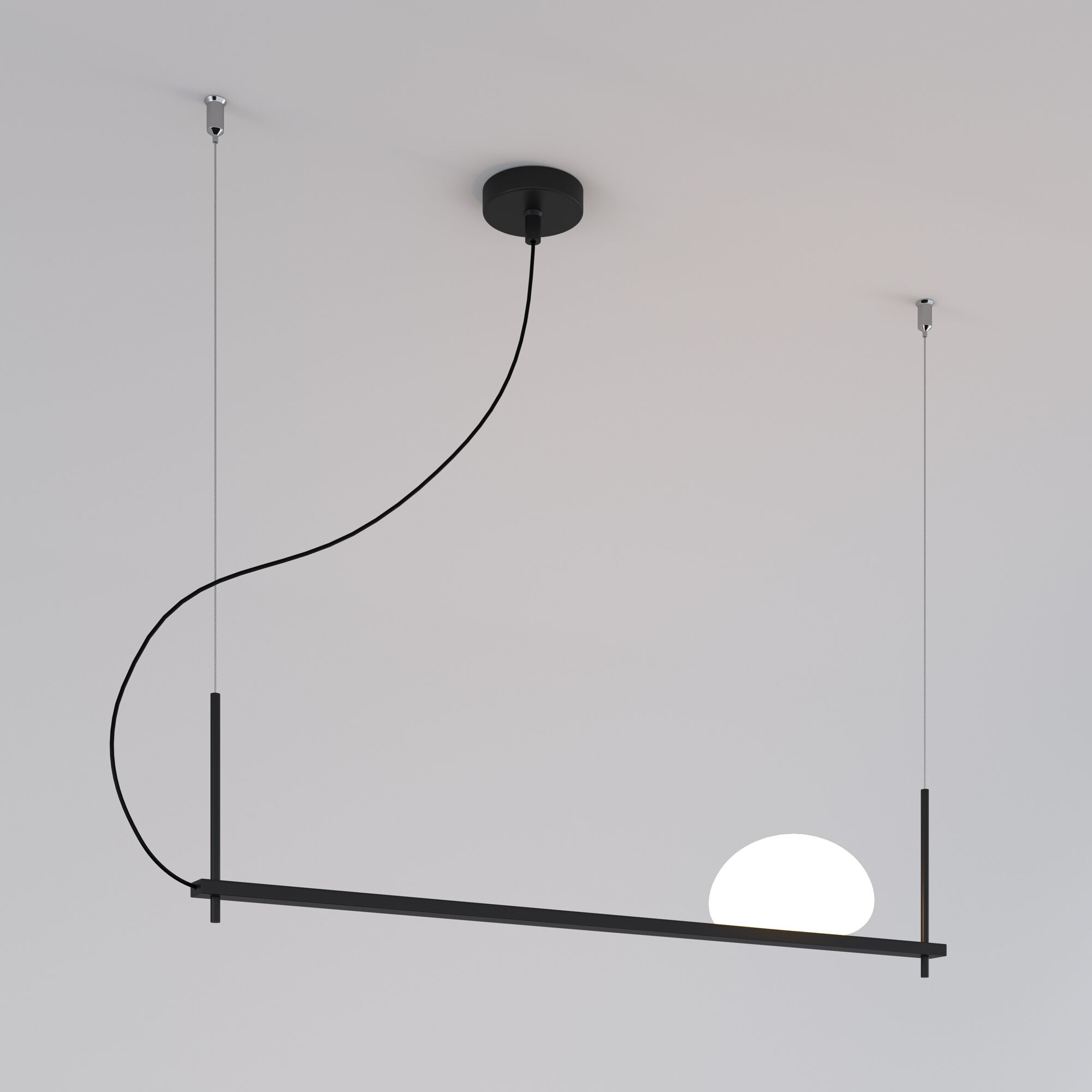 Светильник со стеклянным плафоном оборудован системой регулировки высоты подвеса, позволяющей размещать изделие на разных уровнях, уменьшая или увеличивая угол рассеивания светового потока. Подвесной светильник просто устанавливается на натяжных потолках при помощи монтажной планки.