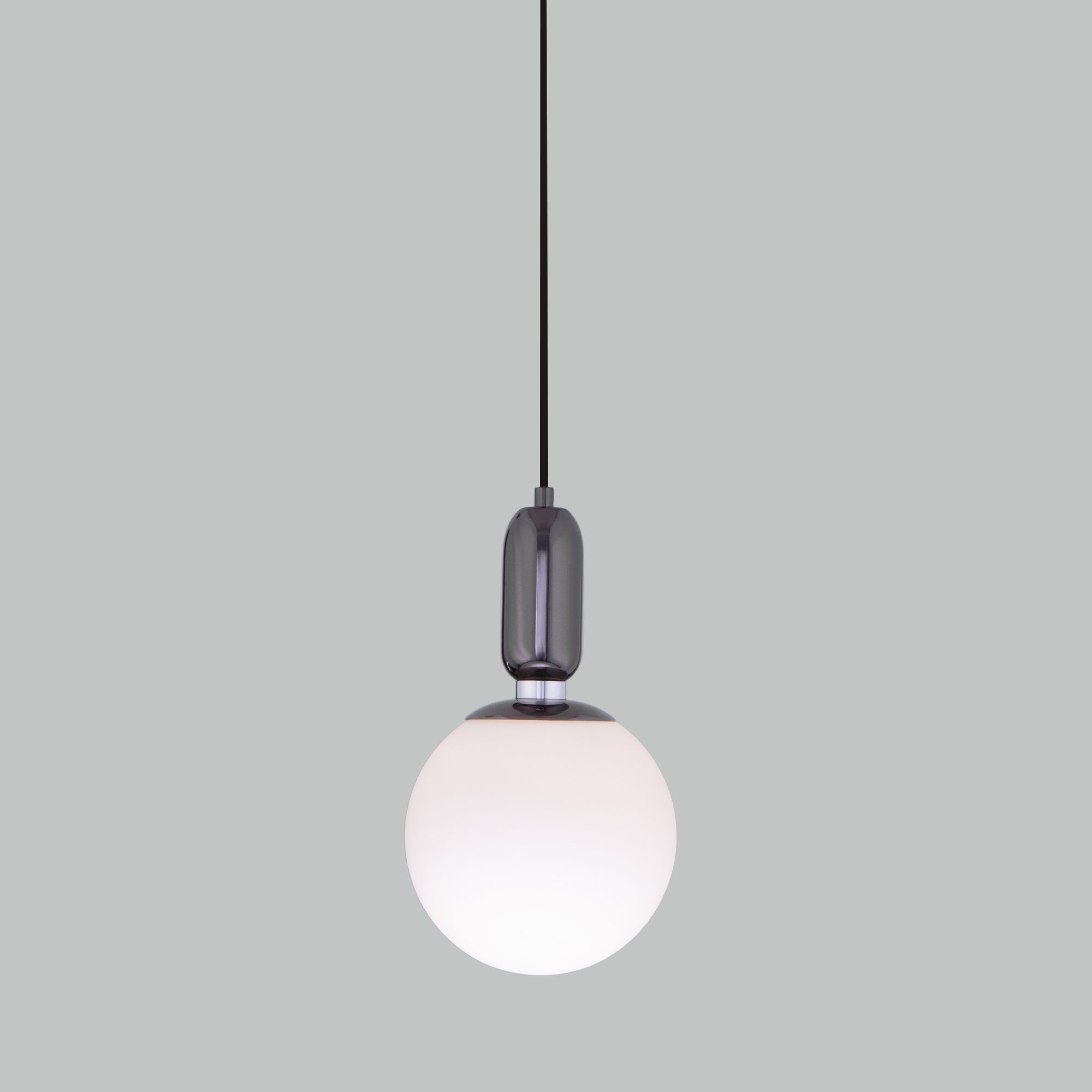 Подвесной светильник со стеклянным плафоном 501971 черный жемчуг предназначен для создания дополнительного освещения и акцентной подсветки в современных интерьерах. Светильник со сменной лампой E27 создаст качественное освещение на площади 4 кв.м. и подсветит рабочие зоны на кухне, в гостиной, в офисе и других местах.