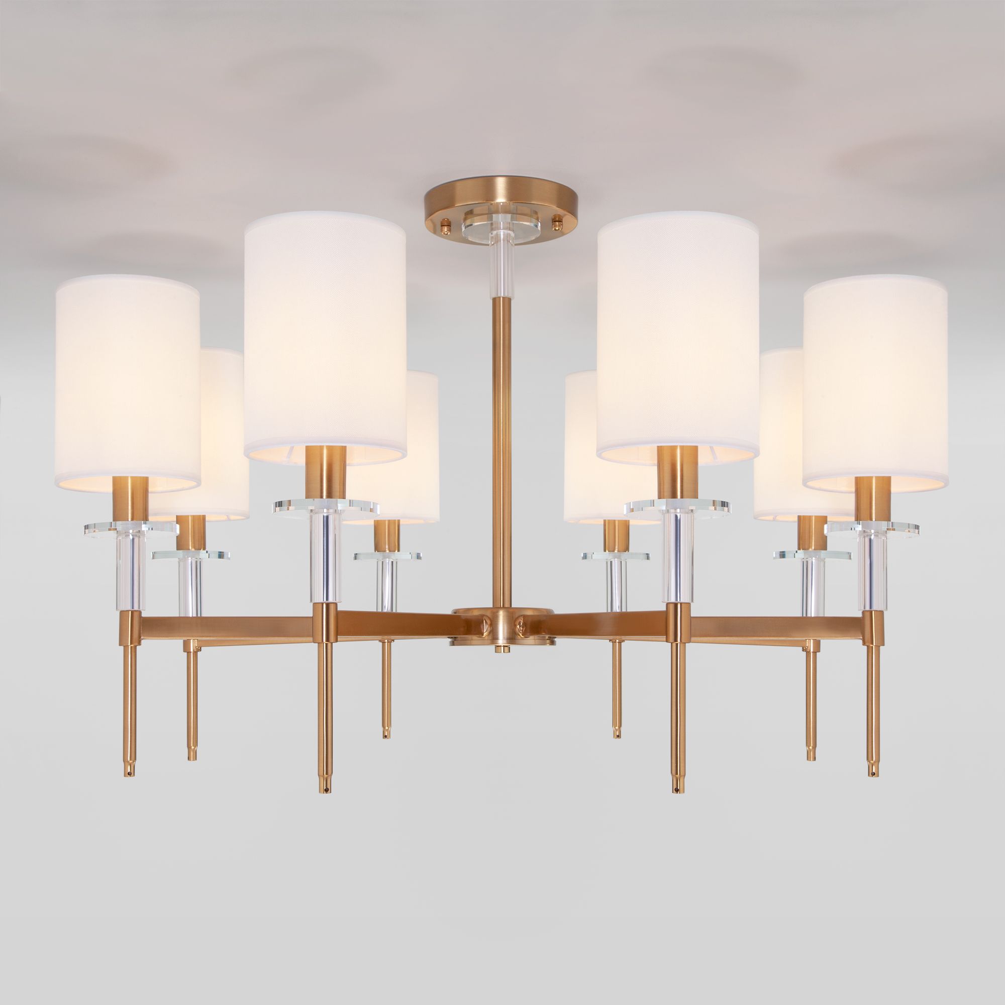 Организовать качественное освещение вам поможет классическая потолочная люстра с тканевыми абажурами восьмирожковая в цвете латунь. Простые эргономичные формы и сдержанные тона станут прекрасным дополнением для вашего интерьера.