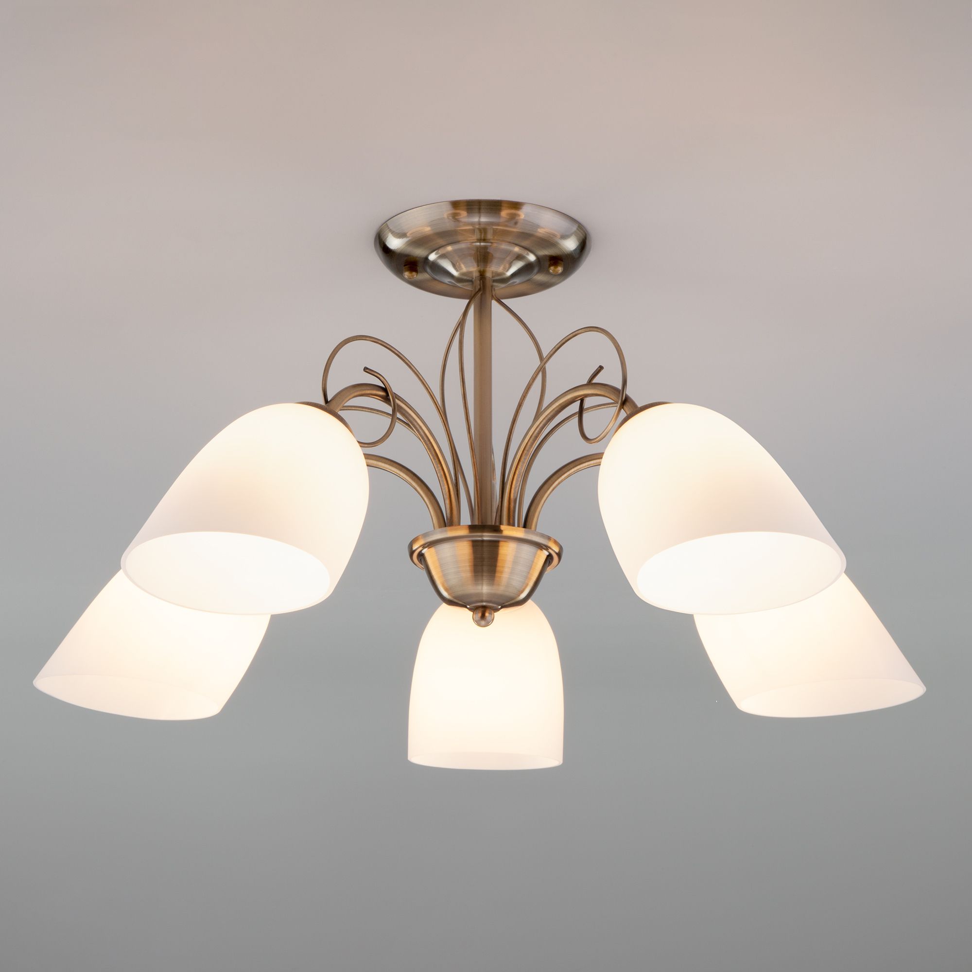 Люстра со стеклянными плафонами 301075 античная бронза из коллекции Stefanie предназначена для создания основного освещения в современных и классических интерьерах. Она привнесет в ваш дом нотку классического шарма и теплого света, а изысканный дизайн, сочетающий плавные линии и матовое стекло, создаст уютную атмосферу в любой комнате. Люстра подходит для различных типов помещений и рассчитана на площадь освещения 10 м².