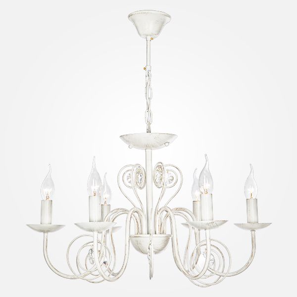 Классическая люстра с хрусталем на 6 рожков в цвете белый с золотом преобразит потолочное пространство и создаст в вашем помещении комфортное полноценное освещение на площади 29 м кв. Изящные формы и классический стиль добавят вашей гостиной утонченного аристократизма.