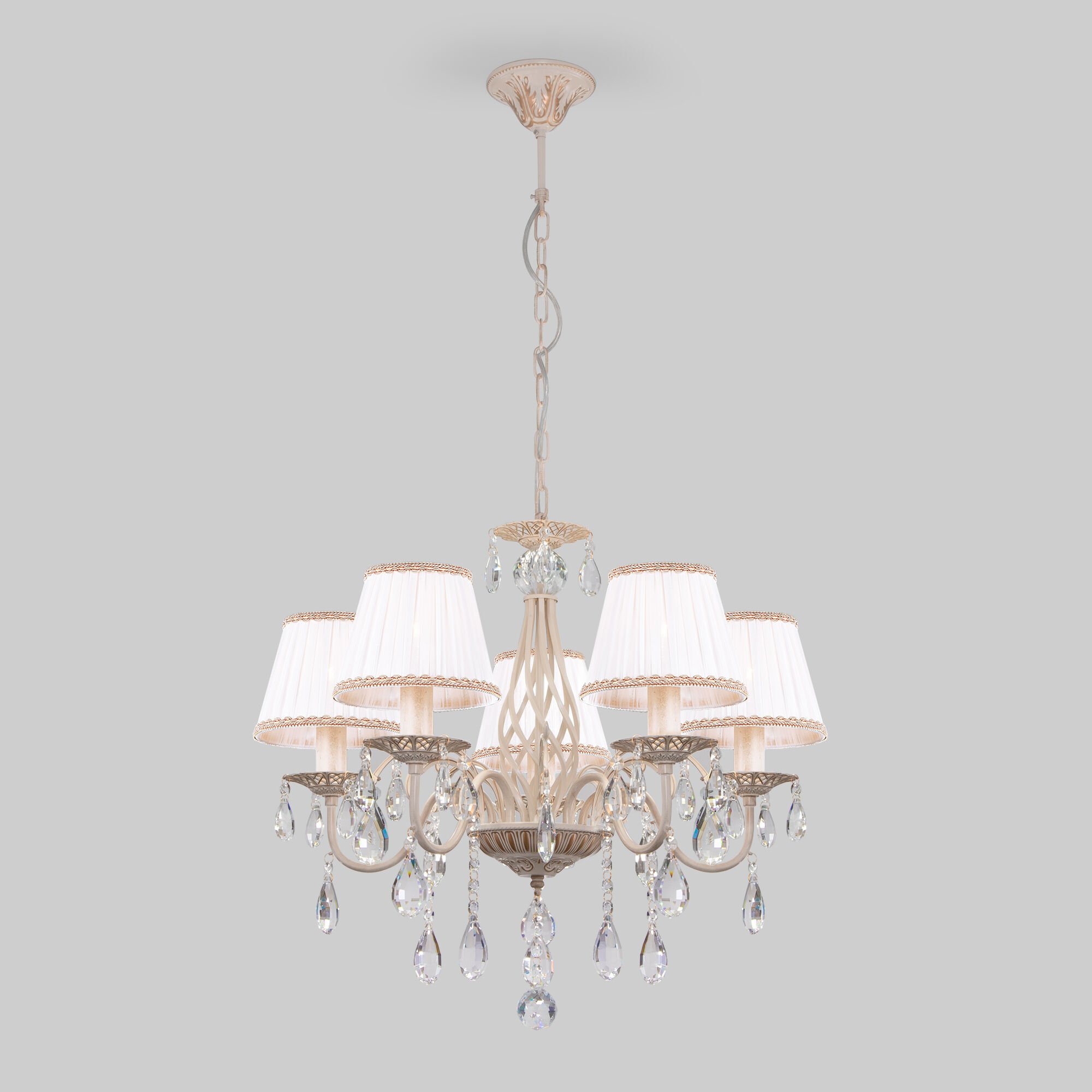 Описание: Люстра с тканевыми абажурами и хрустальными подвесками 10054/5 белый с золотом 00000077237 Eurosvet