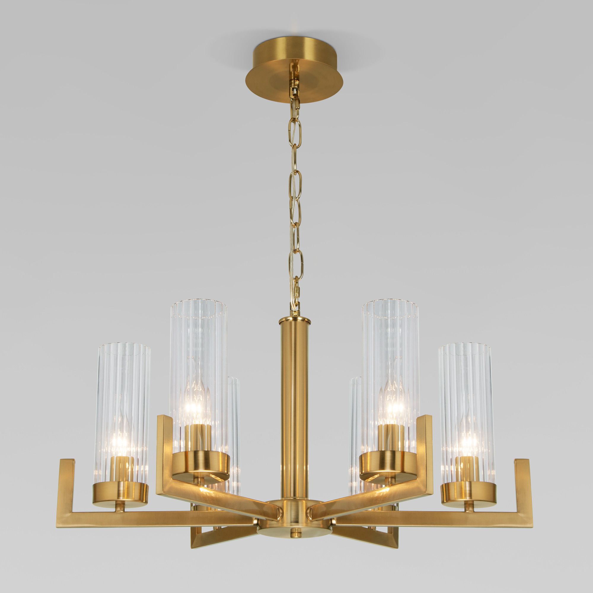 Подвесная люстра шестирожковая в цвете латунь предназначена для создания основного освещения в современных и классических интерьерах, подходит для различных типов помещений: гостиная; спальня и рассчитана на площадь освещения 10 м².