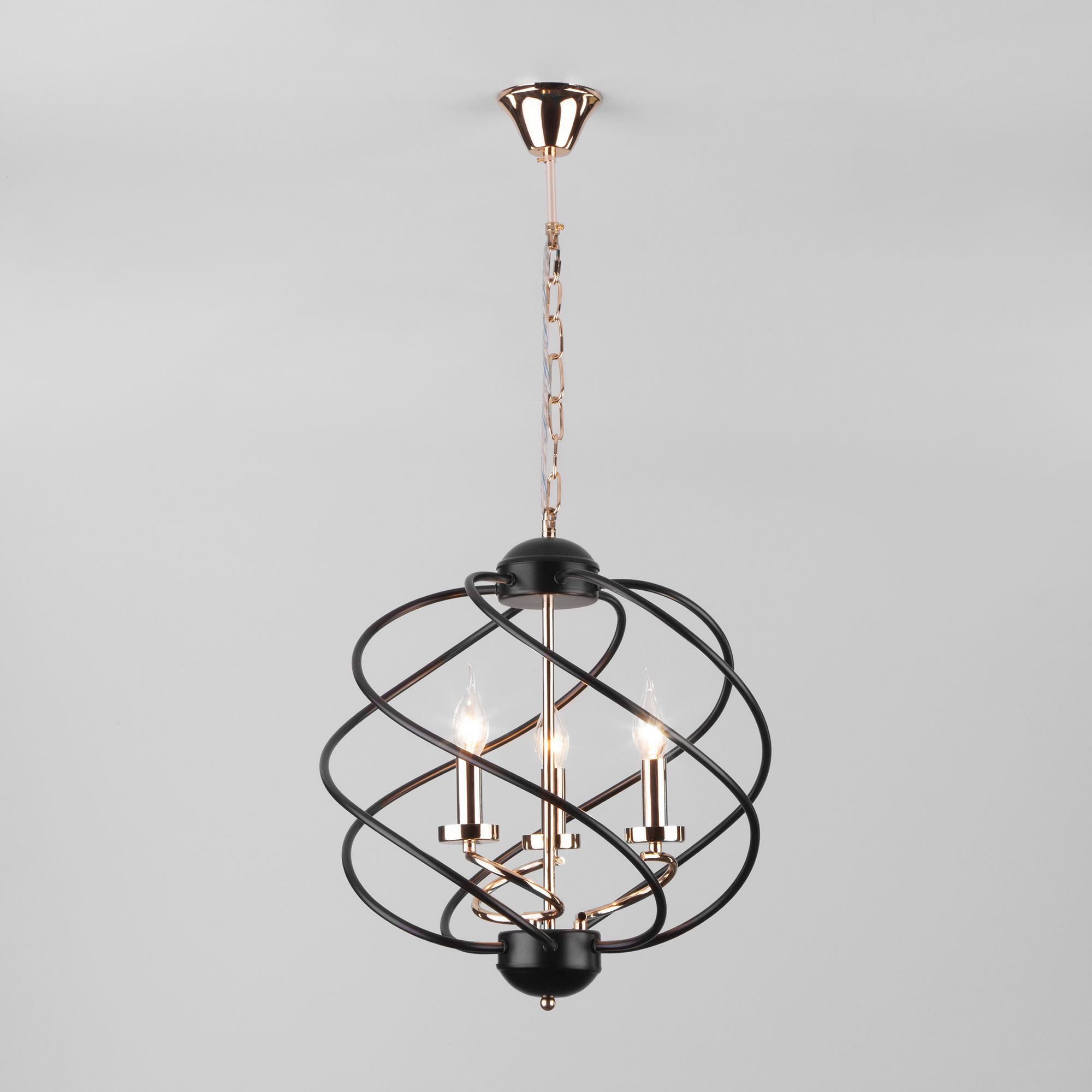 Подвесной светильник 601053 в черном цвете с оригинальным дизайном предназначен для создания дополнительного освещения и акцентной подсветки в современных интерьерах. Светильник со сменными лампами Е14 создаст качественное освещение на площади 13 м кв. для кухни, зала, кабинета и других местах. Трехрожковый светильник без плафона заключенный в спиральный металлический шар с открытыми патронами, гармонично смотрится с лампами свеча и свеча на ветру, такой дизайн увеличивает угол рассеивания светового потока.