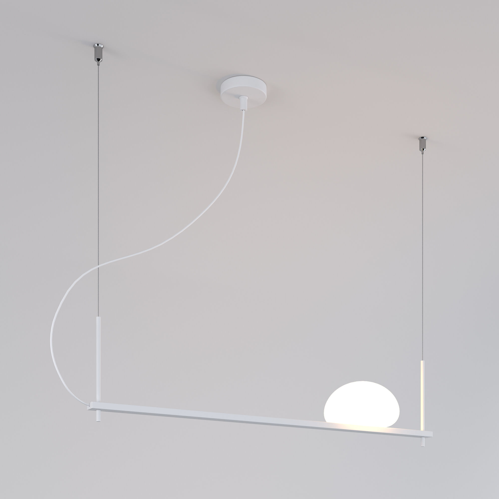Светильник со стеклянным плафоном оборудован системой регулировки высоты подвеса, позволяющей размещать изделие на разных уровнях, уменьшая или увеличивая угол рассеивания светового потока. Подвесной светильник просто устанавливается на натяжных потолках при помощи монтажной планки.