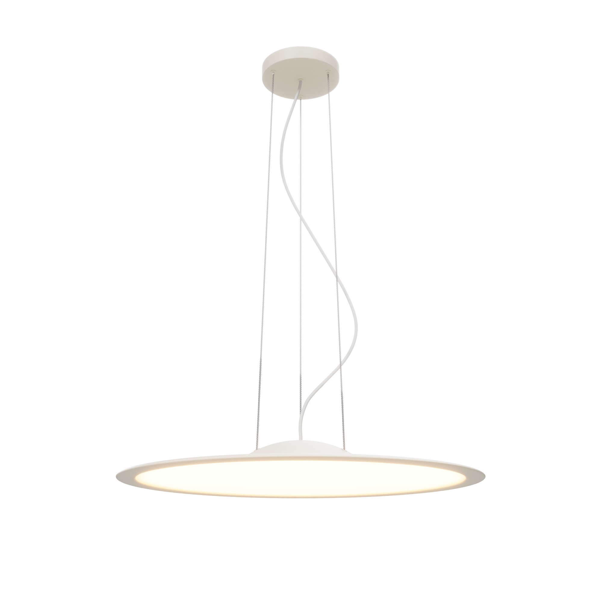 Подвесные светильники серии Industria в монохромном исполнении (белый/черный). Ультратонкий алюминиевый корпус толщиной 12 мм с антибликовым покрытием "сэнди". Матовый акриловый рассеиватель. Встроенный LED-источник с исключительным индексом цветопередачи CRI 97. Угол рассеивания 180°. Дистанционное управление цветовой температурой (2700K-4000K) и диммированием. Диаметр 606 мм, высота регулируется до 3000 мм. Для основного освещения современных интерьеров. Пульт ДУ в комплекте.