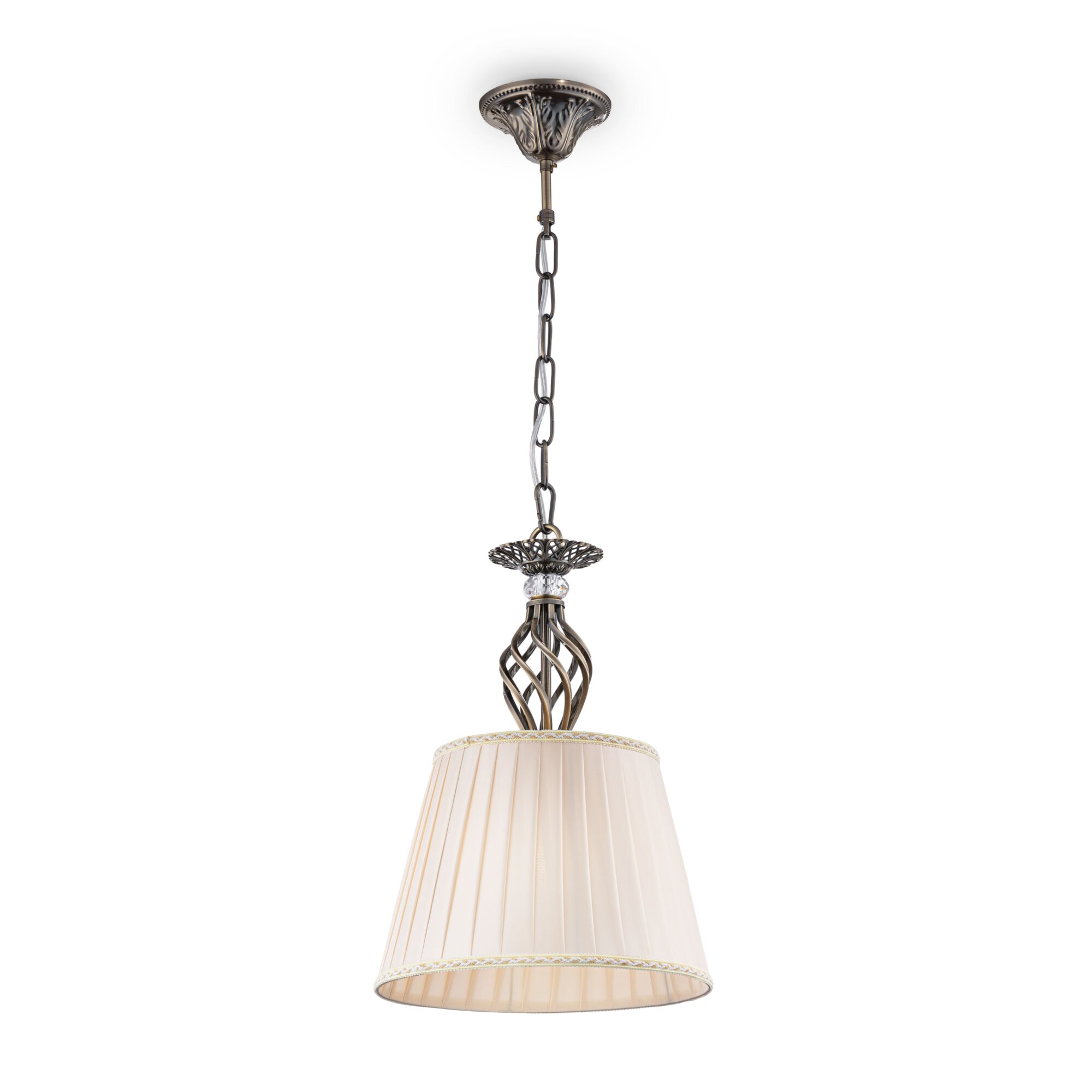 Металлическая арматура, оттенки – латунь, белый с золотом. Модели с открытыми источниками света и с абажурами. Абажуры из органзы, оттенки – бежевый, белый. Закрученный по спирали декор центральной оси. Подвески из кристаллов. - Высота люстр регулируется. Источник света - лампа с цоколем Е14.