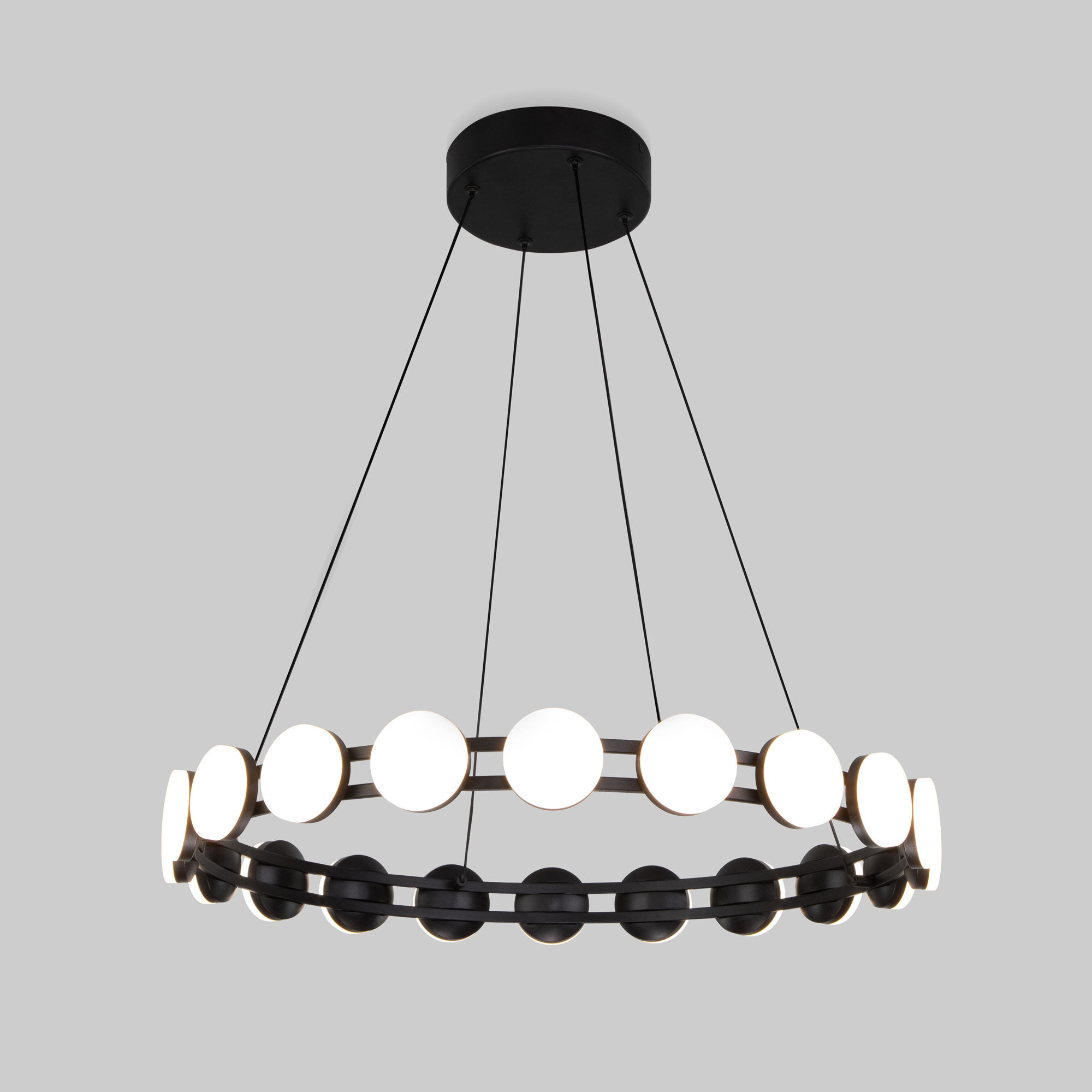 Благодаря матовому рассеивателю подвесной светильник создает мягкое рассеянное свечение. Прочный металлический корпус светильника устойчив к механическим воздействиям, а защитное покрытие обеспечивает надежную электроизоляцию и презентабельный внешний вид.