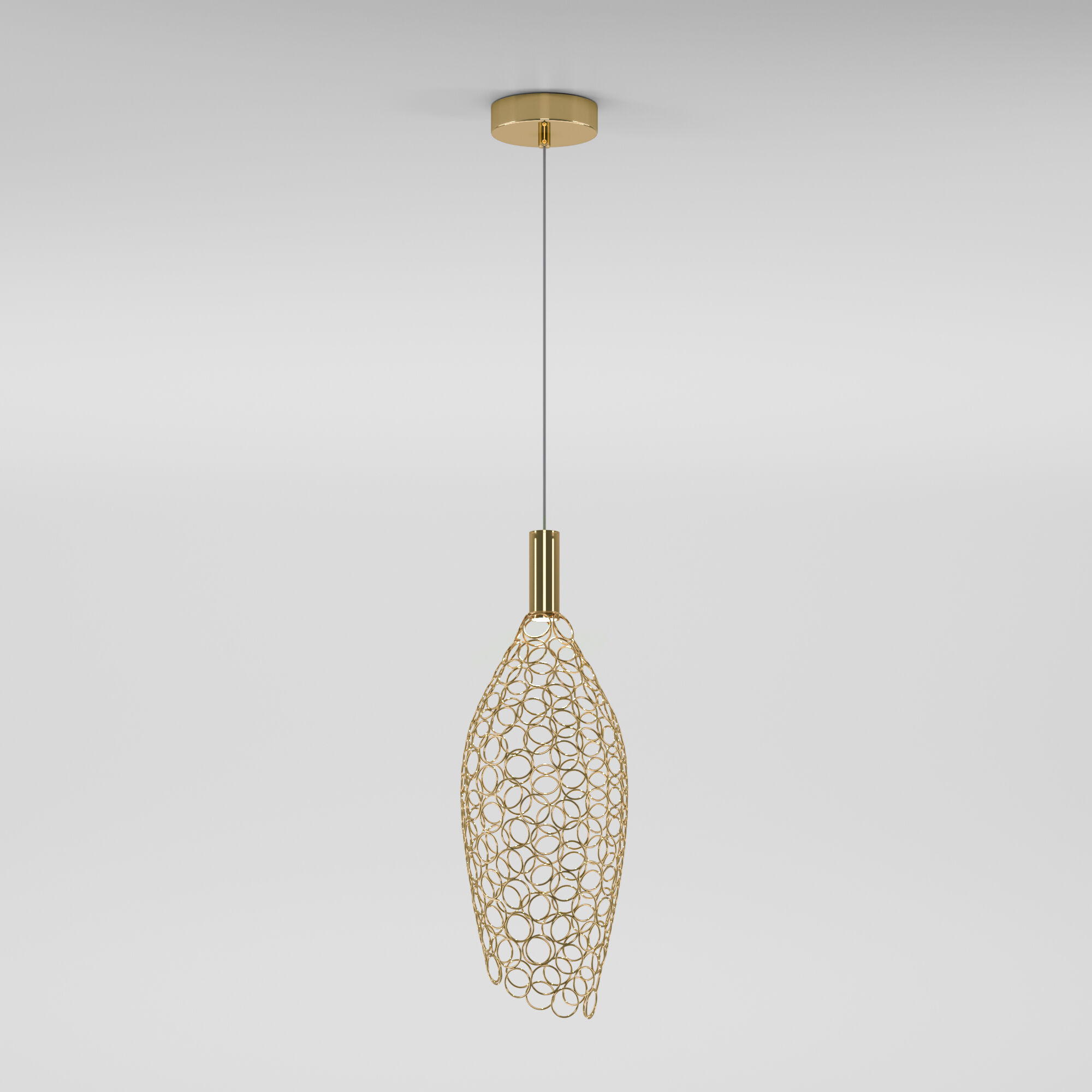 Чистая точная форма подвесных светильников Ruche, состоящая из множества металлических колец, олицетворяет современность с традиционными контурами. Свет мягко рассеивается через металлическую сетку плафона, создавая изысканный мягкий узор на стенах.