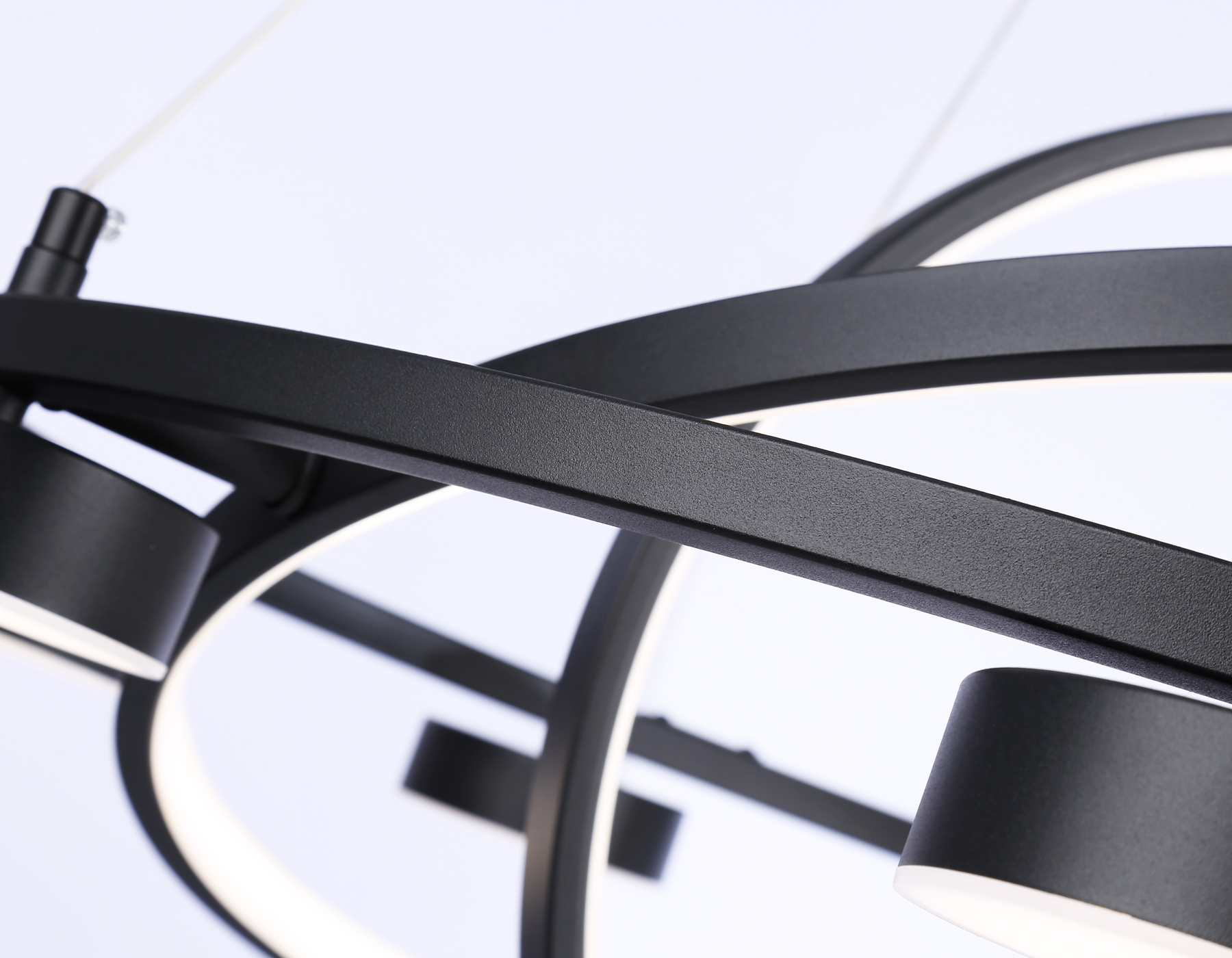 Описание: Подвесной светодиодный светильник с пультом FL51779/3+8 BK черный 3000K/4200K/6400K 112W D800/580/400*1200 (ПДУ ИК) FL51779