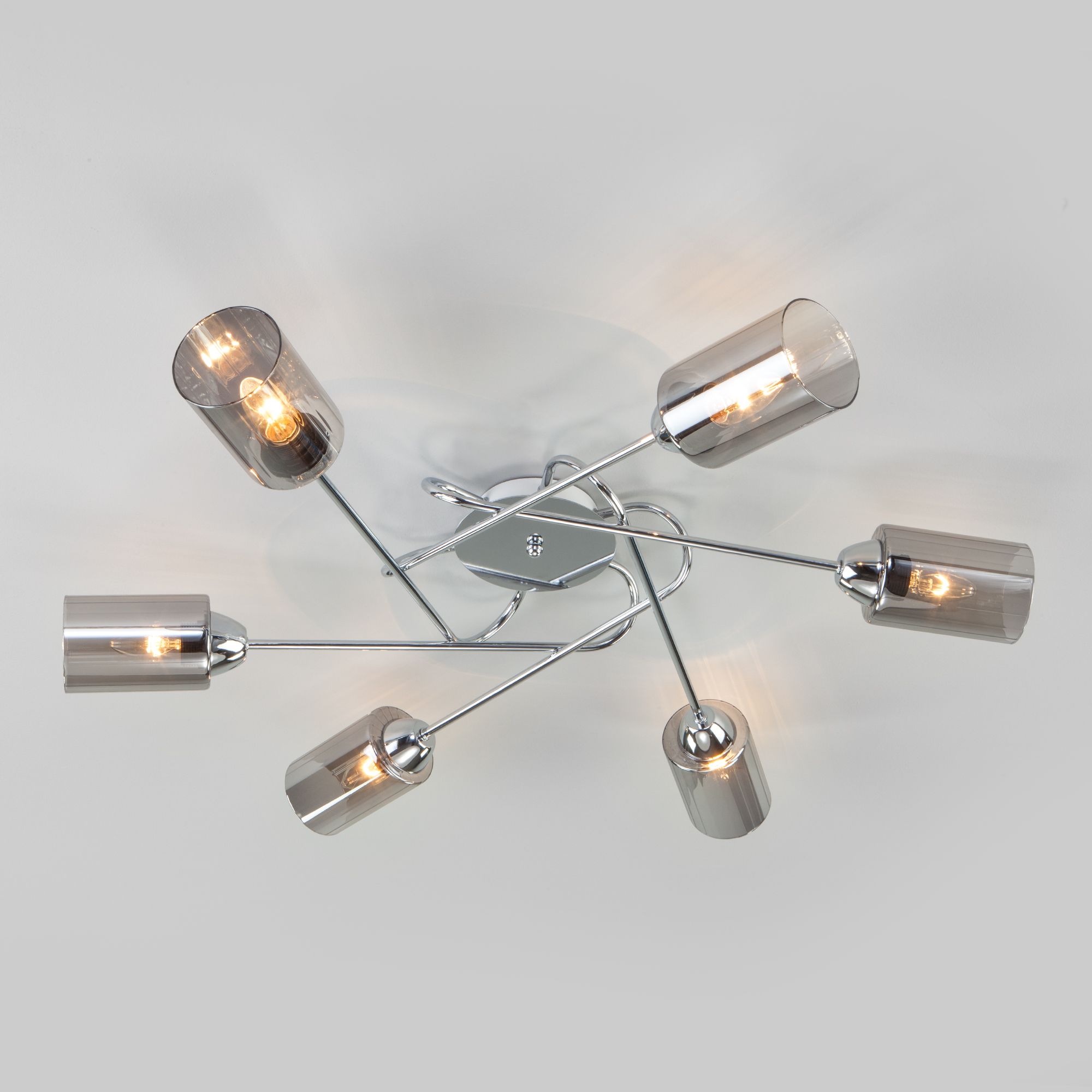 Создать качественное освещение вам поможет современная классическая шестирожковая потолочная люстра со стеклянными плафонами в цвете хром. Простые минималистичные формы и сдержанные тона станут прекрасным дополнением для вашего помещения.