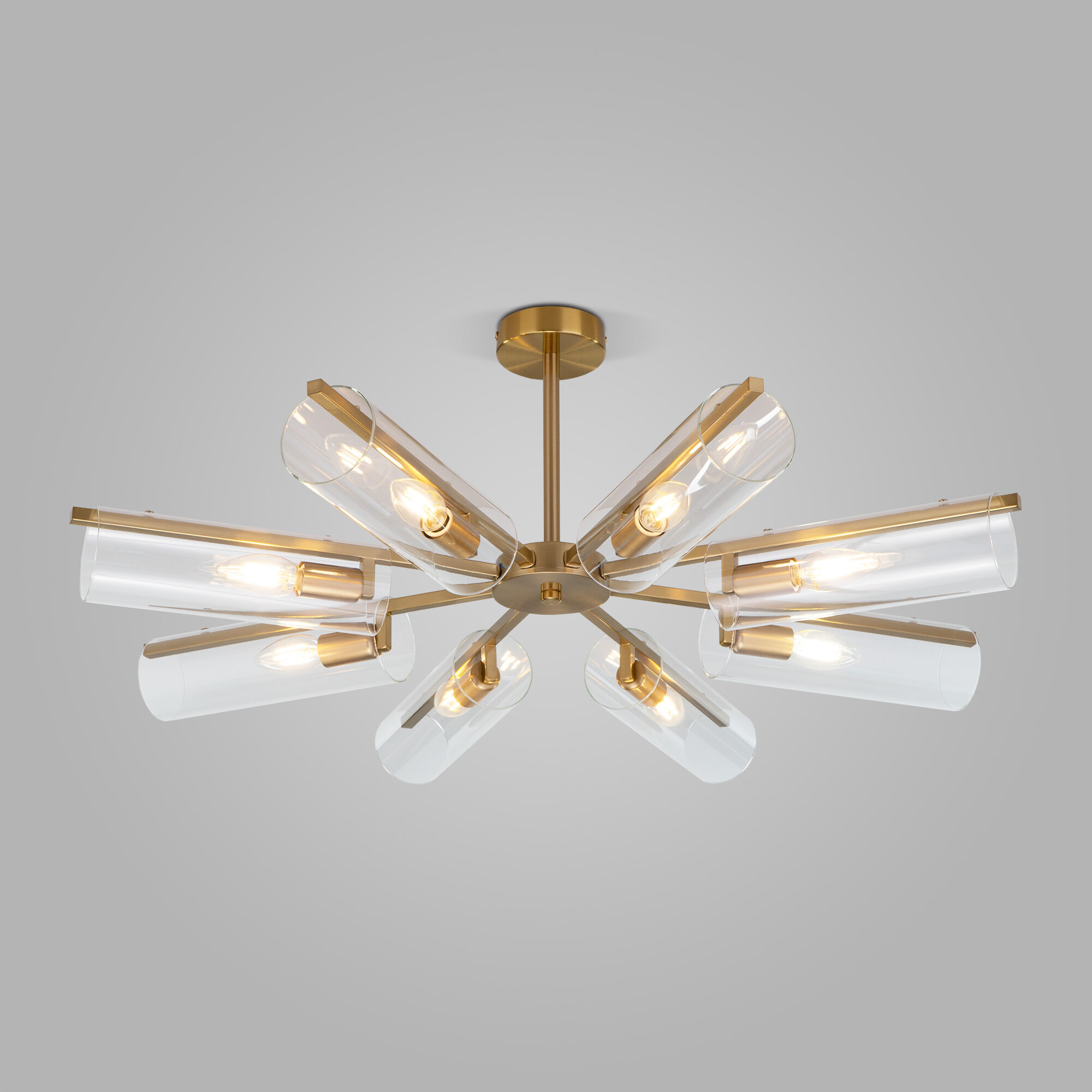потолочный светильник с 8 рожками в цвете латунь, предназначен для создания основного освещения в современных и классических интерьерах, подходит для различных типов помещений: гостиная, спальня и рассчитан на площадь освещения 16 м².
