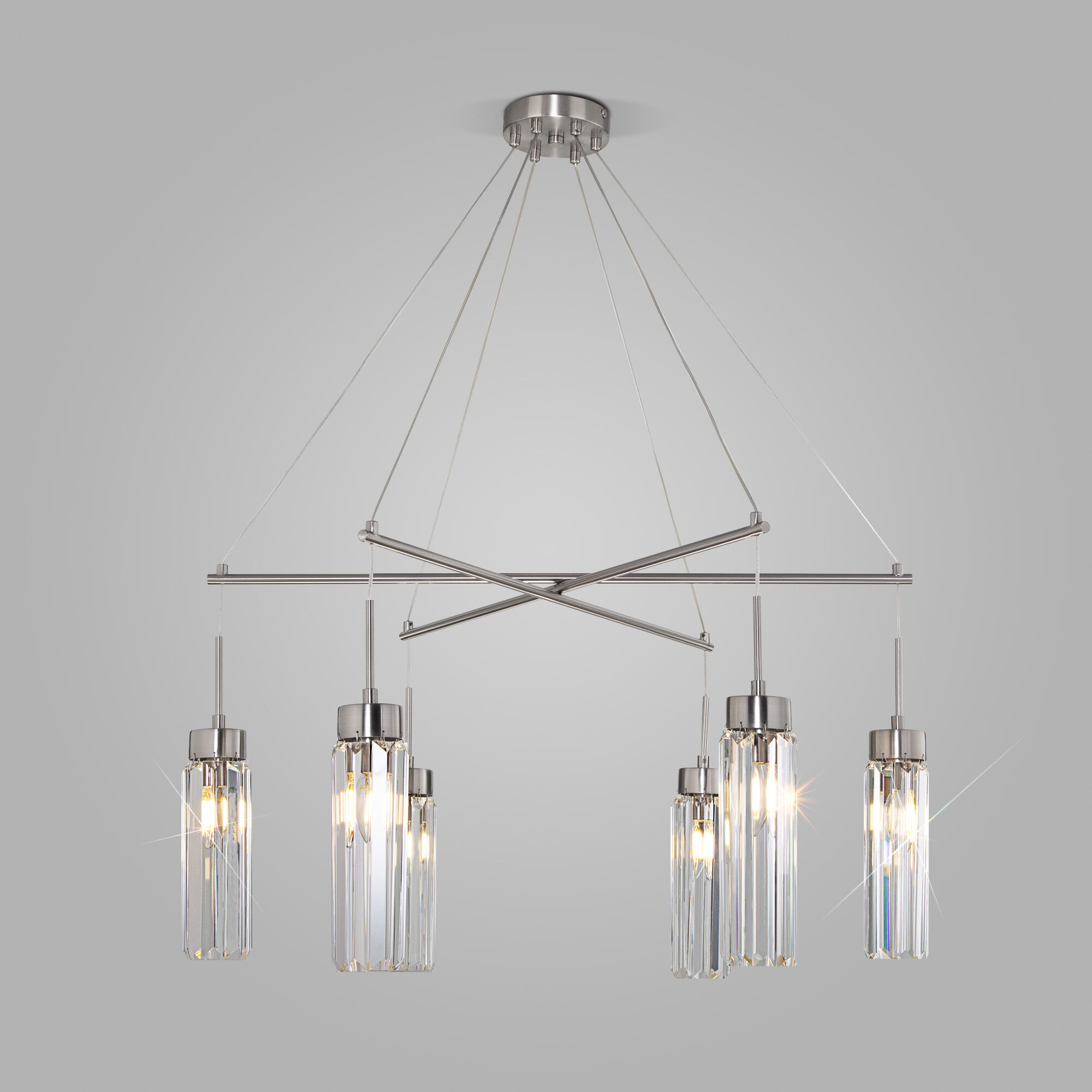 Описание: Умная подвесная люстра с хрусталем 60163/6 никель a065758 Eurosvet