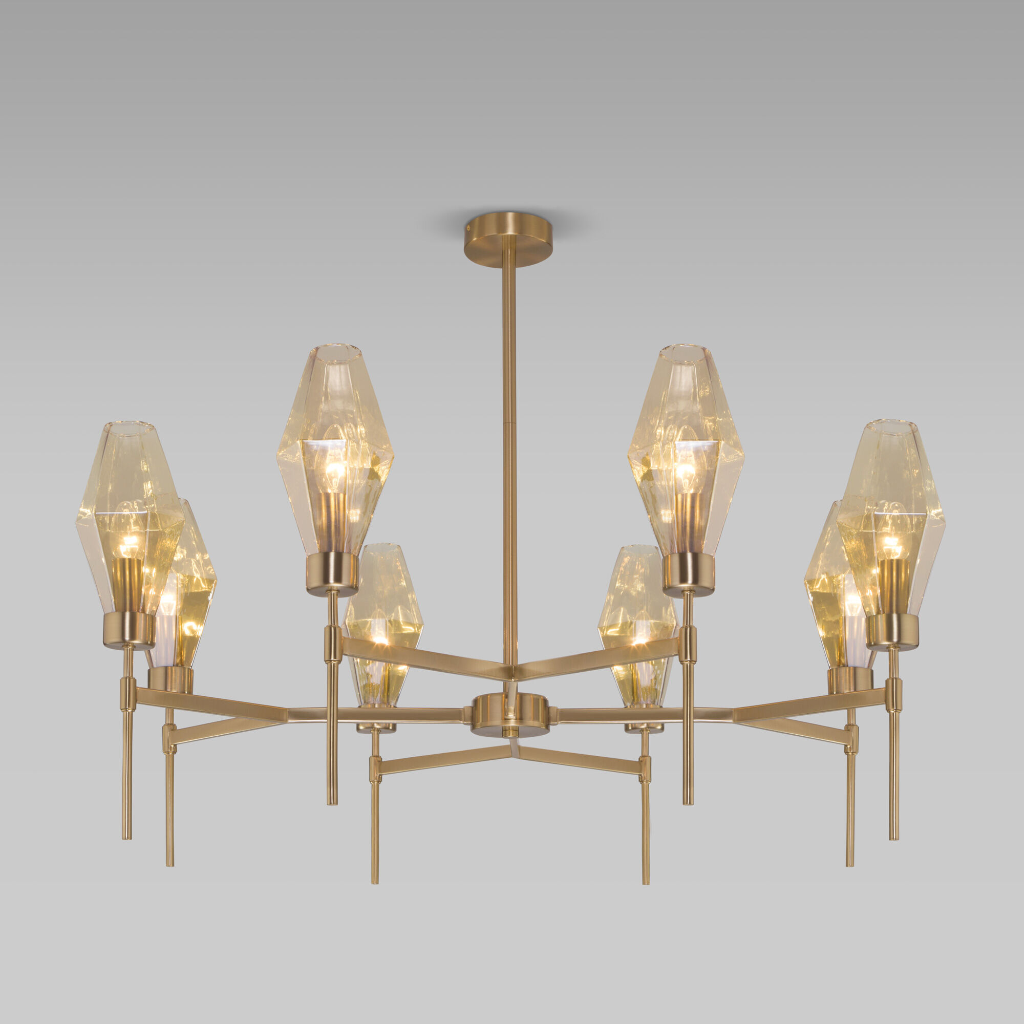Оригинальная люстра Prism объединяет в себе невероятную воздушность и строгую геометрию форм. Восемь невесомых прозрачных плафонов ручной работы идеально дополнены тонкими гранями металлической арматуры в цвете латунь. Ромбовидная форма модели позволяет свету рассеиваться, преломляясь в гранях стекла. Благодаря интересному дизайну потолочный светильник Prism станет изюминкой в декоре современного интерьера гостиной, спальни или кухни. Особенно выигрышно коллекция будет смотреться в пространстве, геометрия которого перекликается со строгими формами светильников.
