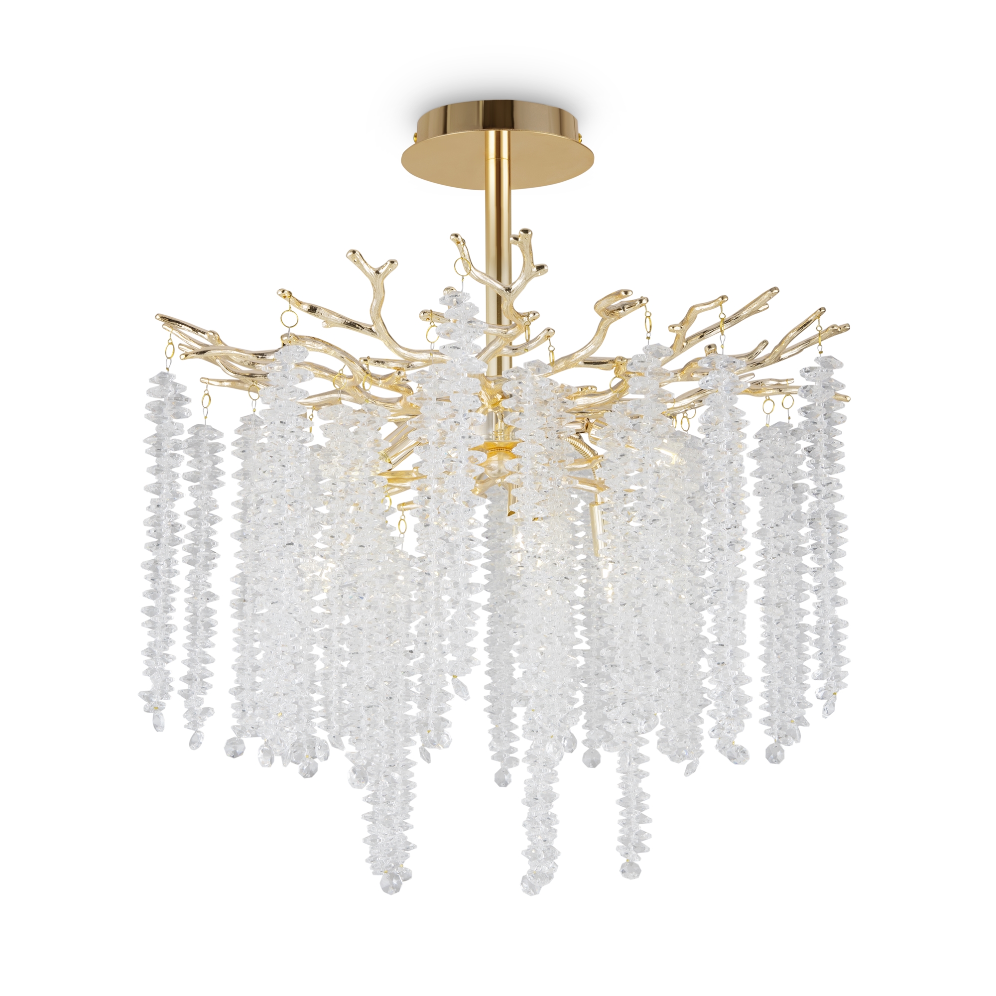Материалы арматуры —металл, цвет — золото. Хрустальные декоративные элементы напоминают капельки - создают глубокие переливы света. Дизайн в трендовой растительной тематике. Источник света — лампа с цоколем G9 и с поворотной функцией.