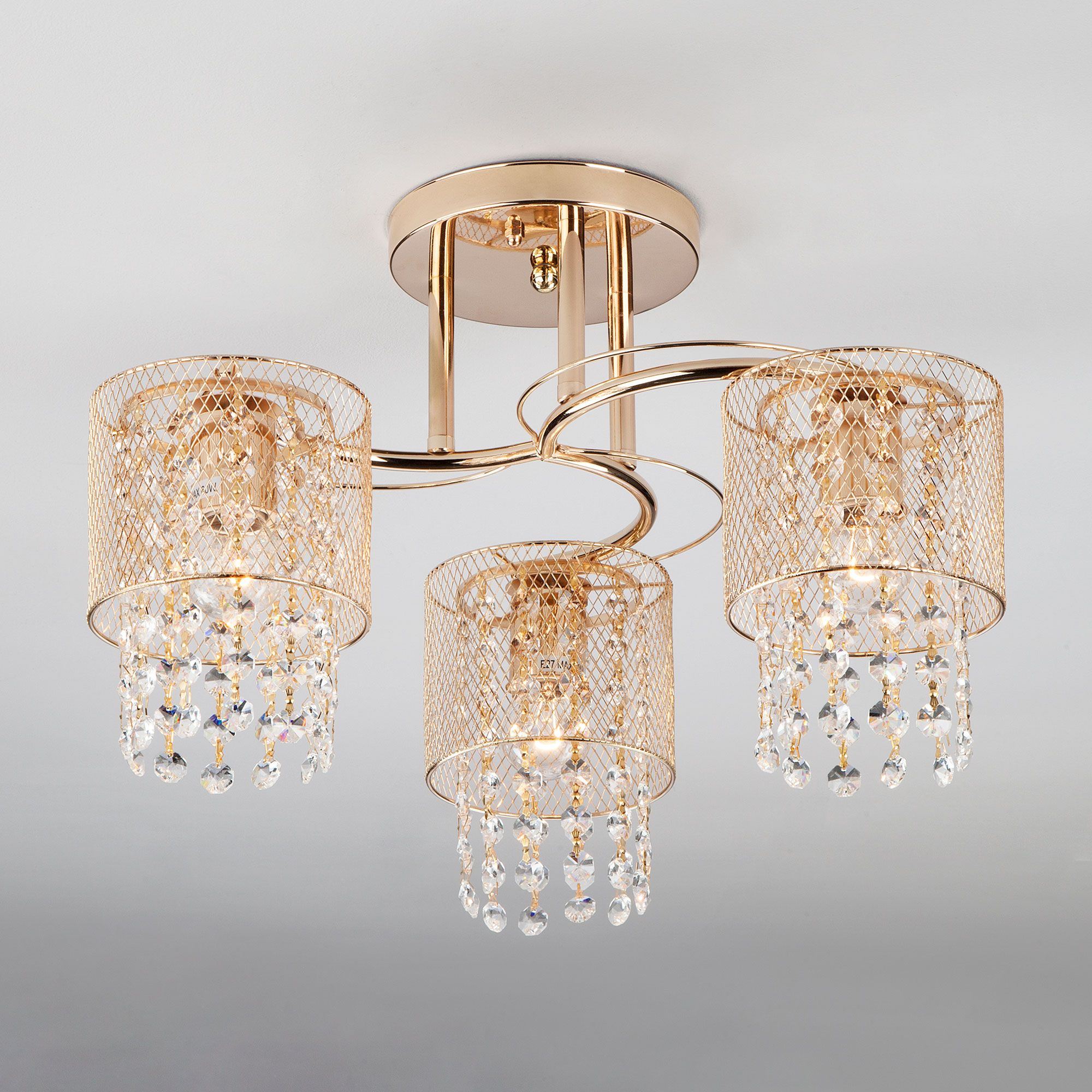 Описание: Потолочный светильник с металлическими плафонами и хрусталем 30137/3 золото 00000084460 Eurosvet
