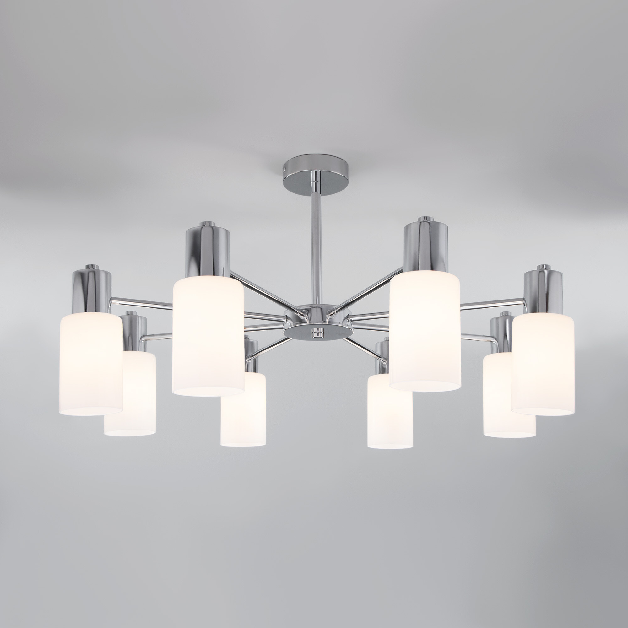 Организовать качественное освещение вам поможет эффектная потолочная люстра со стеклянными плафонами в цвете хром. Простые минималистичные формы и сдержанные тона станут прекрасным дополнением для вашего помещения.