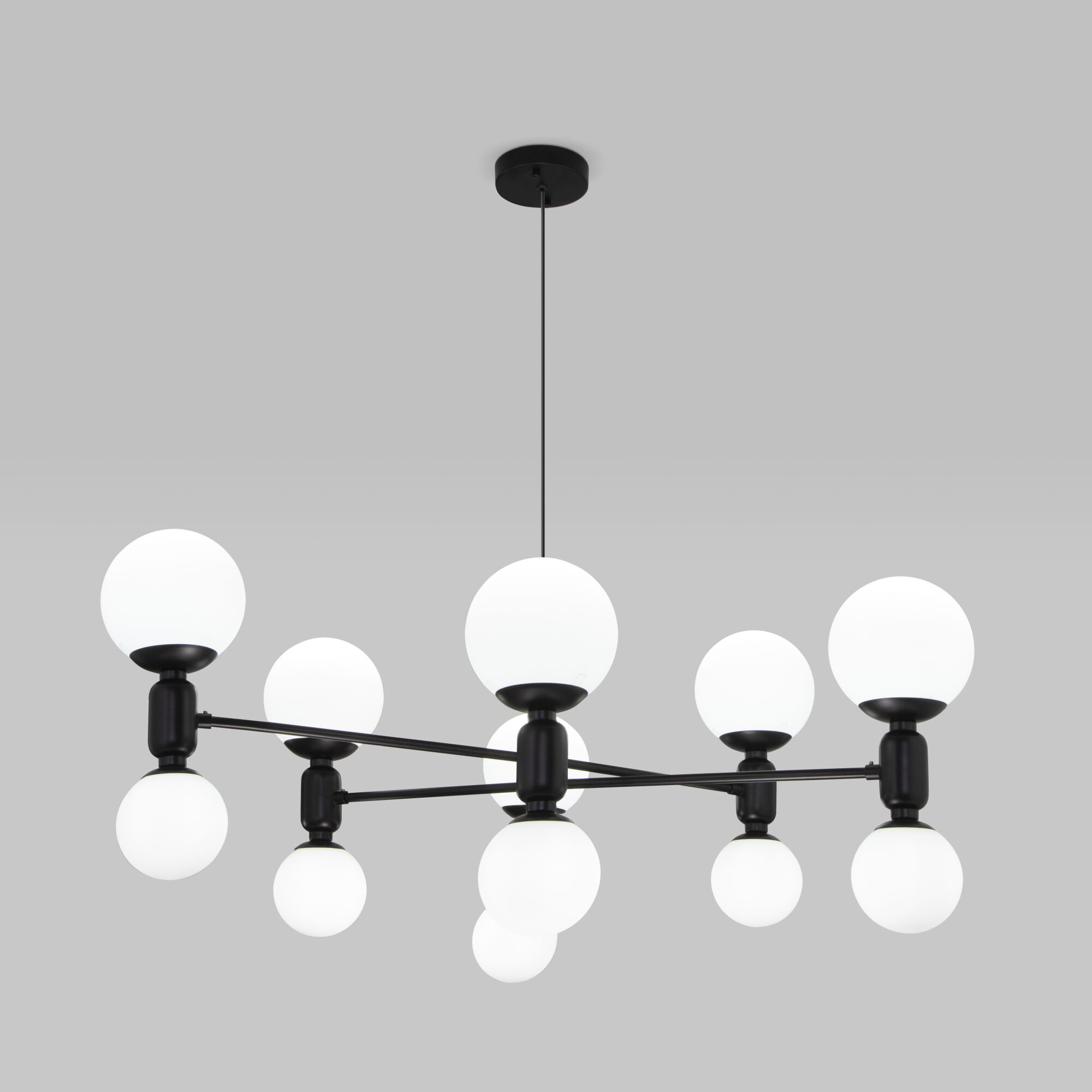 <strongПодвесная люстра Bubble в черном цвете<strong – это выразительное сочетание геометрических форм и лаконичного дизайна. Круглые плафоны белого цвета разных диаметров формируют мягкий равномерный свет. Светильник рассчитан на 12 сменных ламп. Люстра Bubble добавит уникальную атмосферу в интерьер спальни, гостиной или кухни.