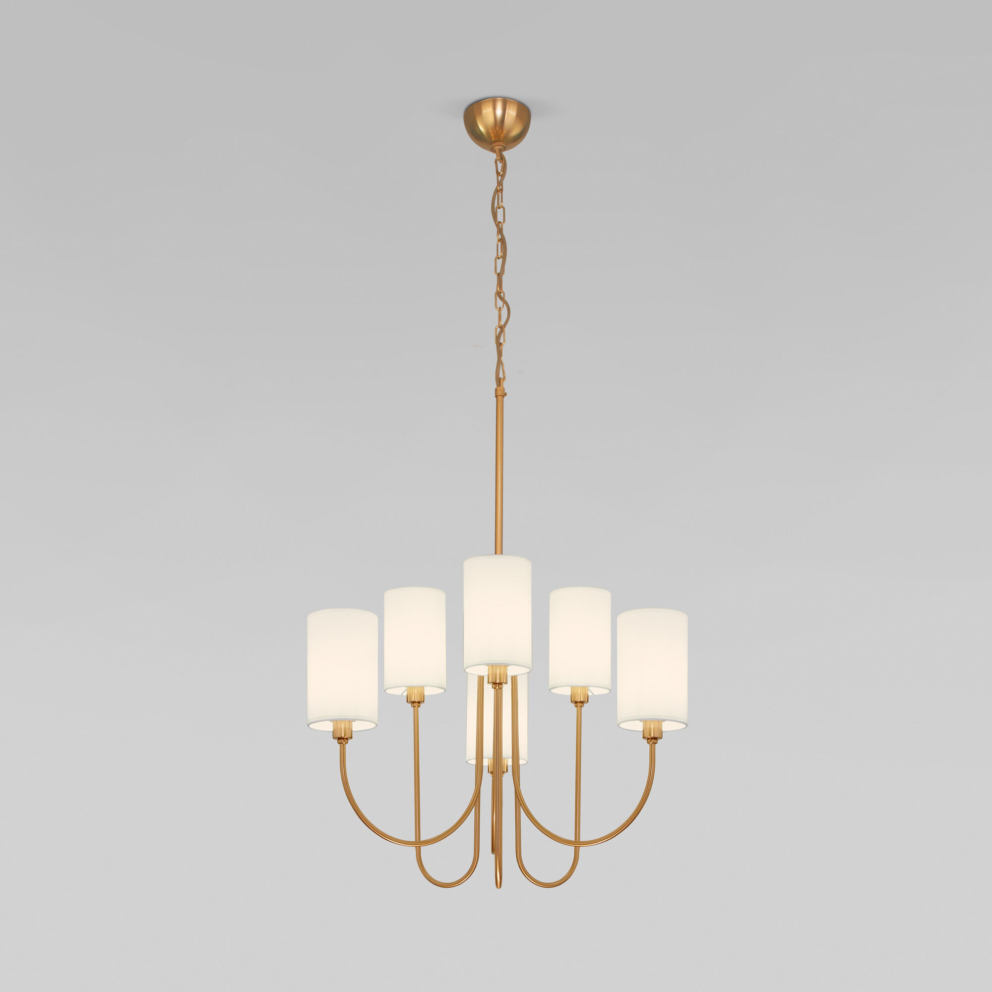 Подвесная люстра с тканевыми абажурами 601646 латунь предназначена для создания основного освещения в современных и классических интерьерах, подходит для различных типов помещений: гостиная; спальня и рассчитана на площадь освещения 11 м².