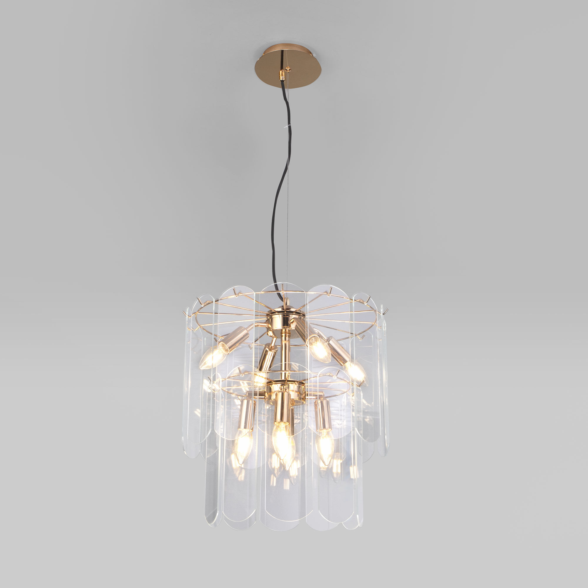 Подвесная люстра в золотом цвете предназначена для создания основного освещения в современных и классических интерьерах, подходит для различных типов помещений: гостиная, спальня; и рассчитана на площадь освещения 16 м².